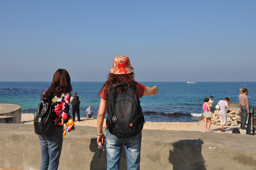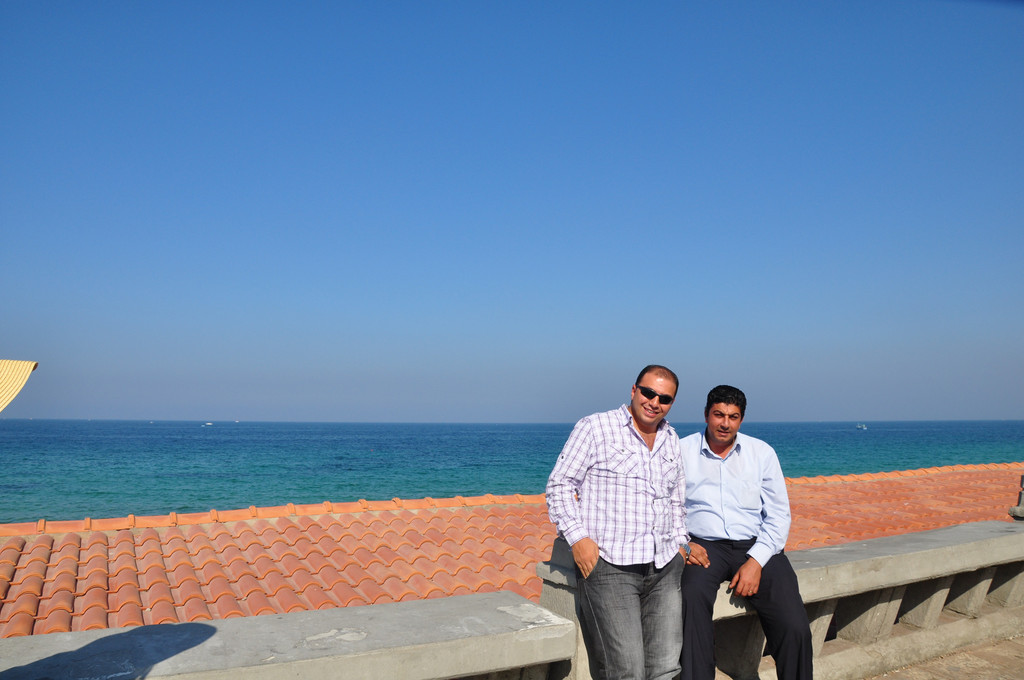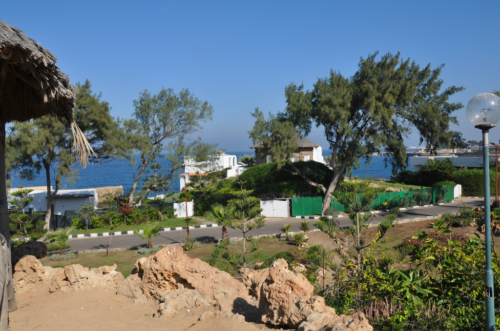 说是皇家花园,完全就是原生态的沙滩,种了少许的绿植,沿海边有一排排富豪的度假别墅,路面坑洼不平,到处是苔藓、果皮和纸削。好在此刻太阳高照,海天一色,风景也是绝佳的,冲淡了我对首都应该有的模样的失望情绪,便忘情的拍照留念。在海边偶遇两位埃及帅哥,很热情的接受我们为他们拍照的要求。