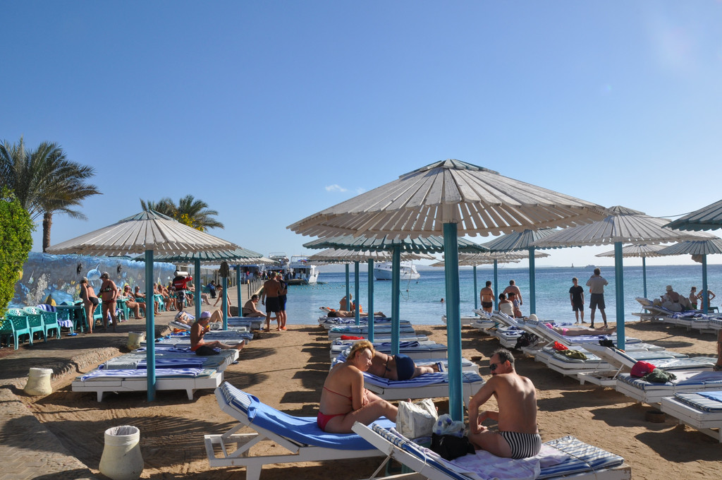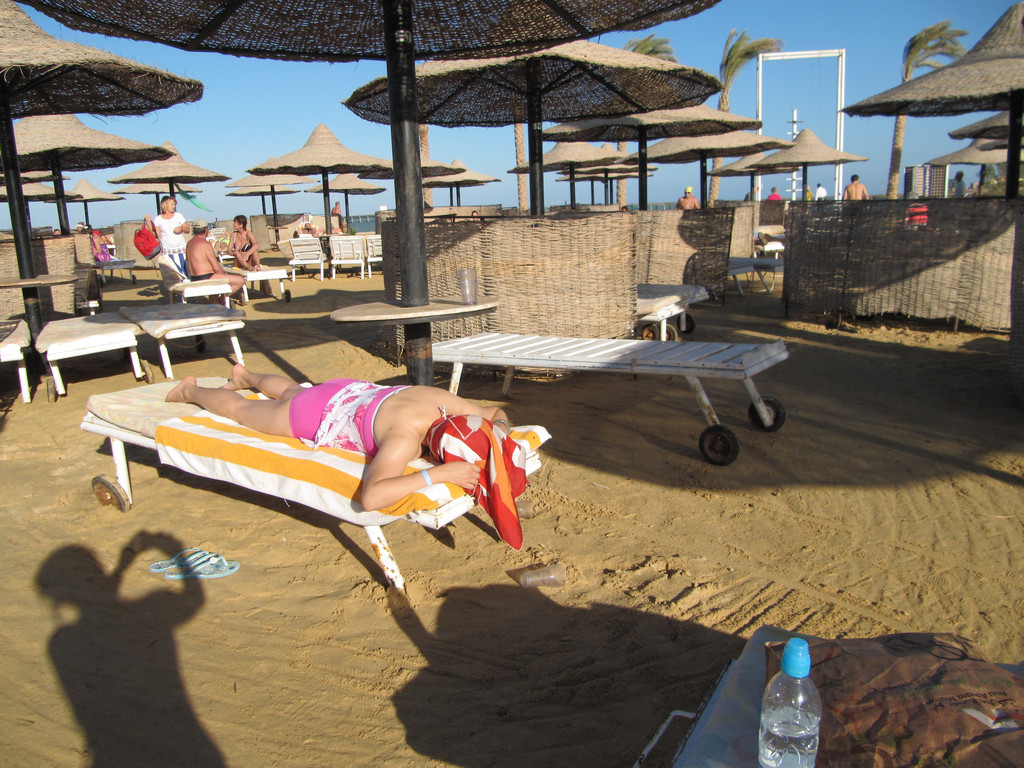 明天就要离开红海回到开罗,我们是不是也要试试日光浴呢,买了防晒油,厚厚地涂抹全身,在太阳下煎烤着。