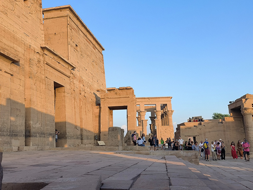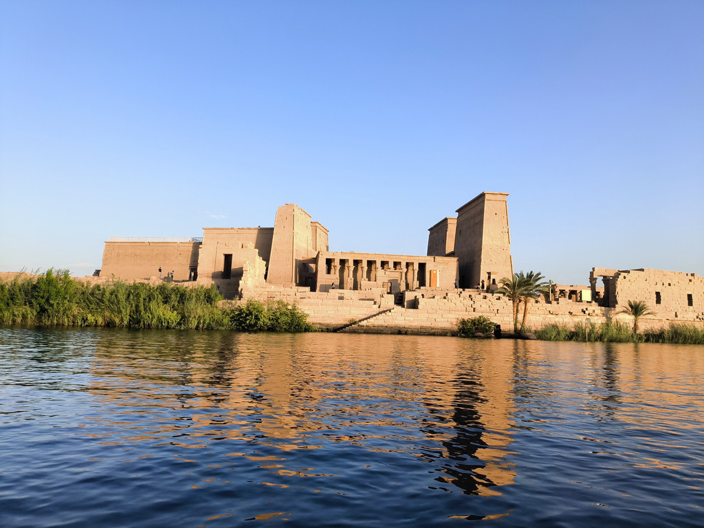 C:水上神庙--菲莱神庙:菲莱神庙供奉着爱神艾西斯。菲莱是一个位于阿斯旺大坝南面的尼罗河中的小岛,原来该小岛上建有神庙。1902年英国人修建阿斯旺大坝时,淹没了菲莱岛,游客也只能乘着船观看露出水面的神庙庙门和石柱。菲莱神庙里有象形文字碑文和一些形象生动的浮雕,在这里被祭奠的有富庶之神哈索尔和生育之神艾西斯等。据说艾西斯有一万个名字,她不仅掌管生育,还是所有人的庇护神,因而很受古埃及人的尊崇。1980年,埃及决定将岛上的古迹转移到另一个岛上,还其原来面目。黄昏的时候夕阳照在神庙更是增添了一丝哀愁和凄美。