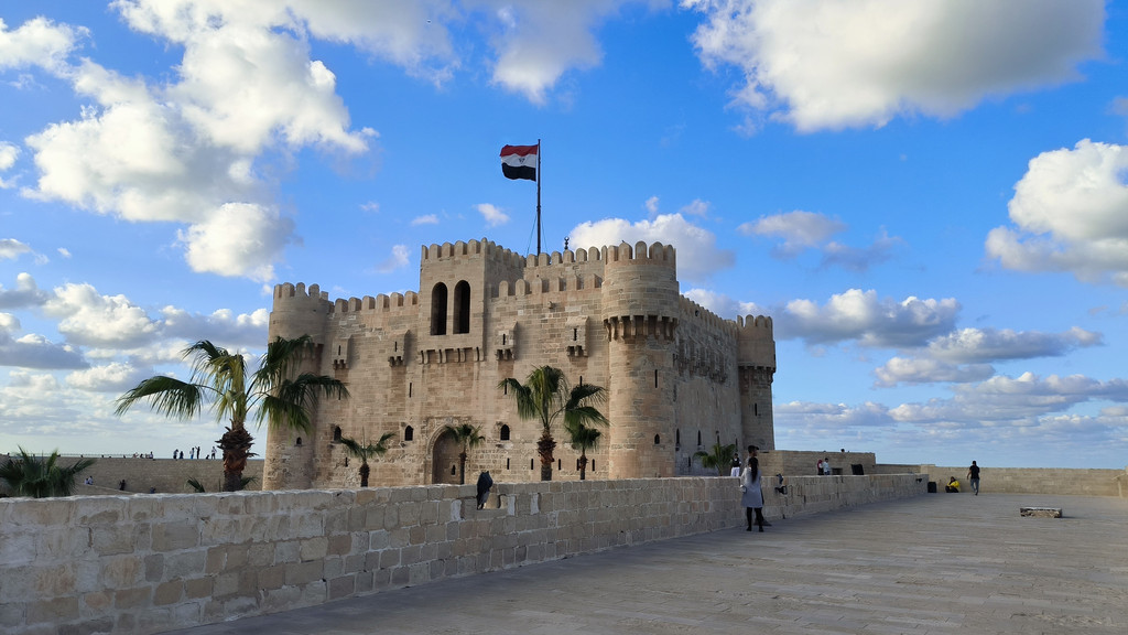 B:盖贝依城堡:对古代水手来说,埃及海岸简直是一个噩梦,平坦的海岸线令海员们常被暗礁和浅滩所蒙蔽。公元前280年秋天的一个夜晚,月黑风高,一艘埃及的喜船,在驶入亚历山大港时,触礁沉没了,船上的皇亲国戚及从欧洲娶来的新娘,全部葬身鱼腹。这一悲剧,震惊了埃及朝野上下。这之后托勒密一世下令建造一座高塔,这样水手在靠岸之前很远就能看到。经过12年的修建,法罗斯灯塔终于于283年落成,因其规模宏大、形状独特,古代人将它评为世界七大奇迹之一。