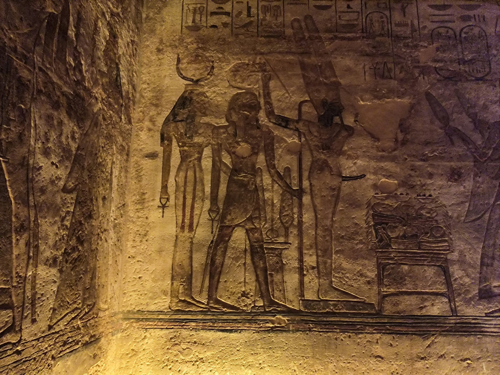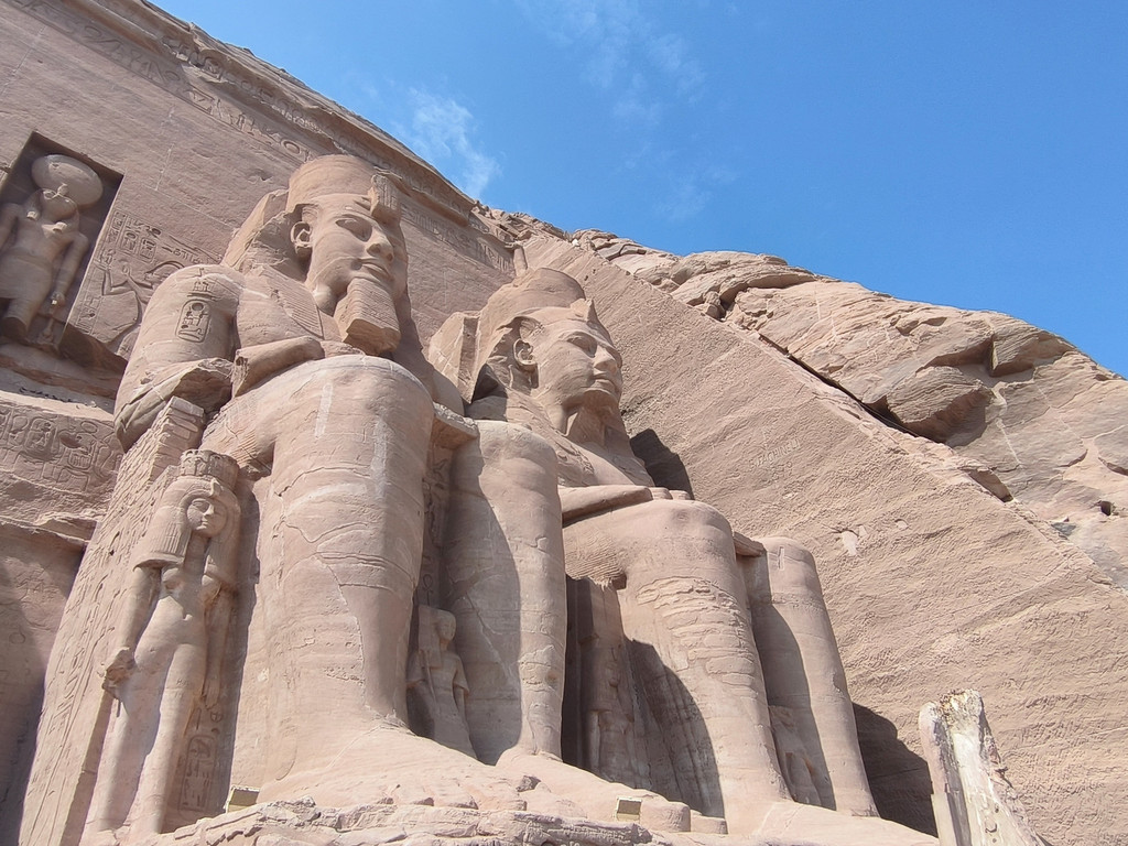 A.阿布辛贝:阿布辛贝神庙——位于阿斯旺西南,它是伟大的拉美西斯二世为他的宠妃奈菲尔塔莉所建,是个非常令人神往和富有浪漫故事的地方。阿斯旺开车去大约要4个小时,离苏丹只有10几公里了,虽然路程很远,很辛苦,但是看到那巨大的石像,感觉一切辛苦都值了,这里还有一个神奇现象,每年的固定时刻,太阳的光线会照到三层大殿之内国王的脸上,这不能说不是一件奇迹,所以这里每年举办太阳节,世界各地的人会等在这里,观看这一人类智慧的结晶与奇景。