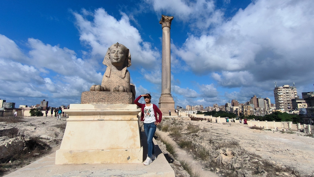 C:庞贝柱:耸立在塞拉比尤姆神庙(Temple of Serapeum)的废墟上,需要攀登上100级台阶才能抵达。庞贝柱是一根高22米的巨大圆柱,用红色的阿斯旺花岗岩砍凿而成,这就是著名的庞贝柱,它赫然耸立在罗哈克提斯(Rhakotis)山丘的遗迹上,亚历山大大帝就是在这里长大的。数个世纪中,庞贝柱已经成为亚历山大的主要景点,它的主体是轴状的锥形花岗岩,地基深达2.7米,顶端是精美的科林斯柱头。庞贝柱底部的碑铭显示,圆柱建立于公元291年,是用来支撑戴克里先(Diocletian)皇帝的雕像的。当年的统治者为了传播希腊文化,同时守护埃及文明,创立了塞拉匹斯(Serapis)信仰。“Serapis”一词源自埃及神祗Osirapis,托密勒一世为其添加了希腊诸神的特质,为他的子民缔造了全新的守护神塞拉匹斯,并在罗哈克提斯山丘上建立了塞拉比尤姆神庙。在后来的政教纷争中,神庙惨遭基督徒毁灭。