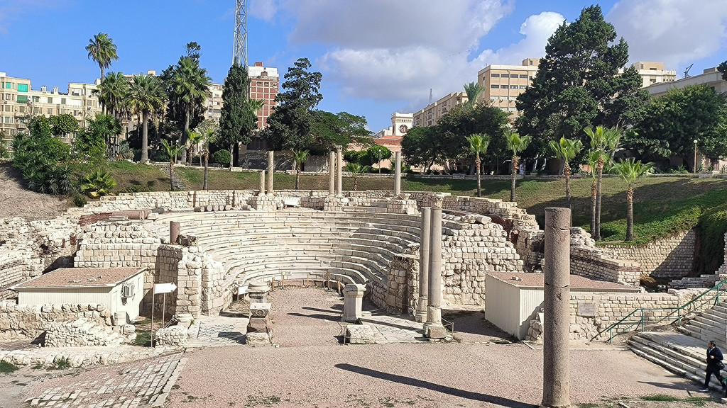 E:罗马剧场:罗马具有代表性的建筑圆形剧场,藏在Kom El-Dikka遗址挖掘区内,规模不大,但是是埃及罗马圆形剧场,也算是弥足珍贵。这座剧场在20世纪60年代被波兰考古学者发现,据考证,它的历史可追溯到4世纪,是希腊罗马时期的典型建筑,13排欧洲大理石台阶环成半圆形,可容纳600名观众。