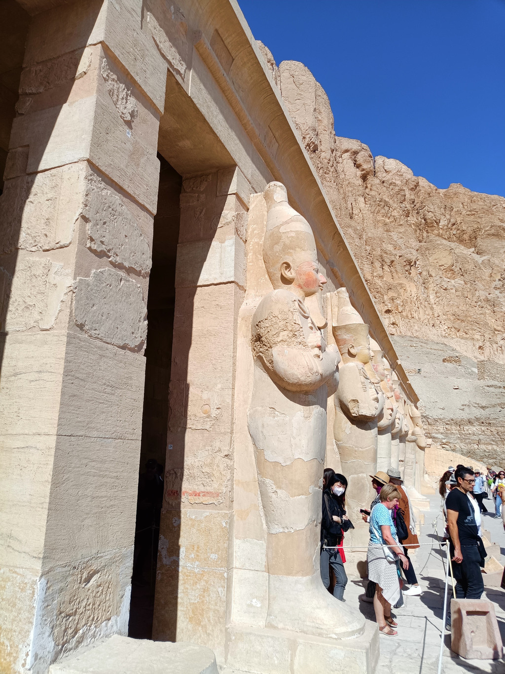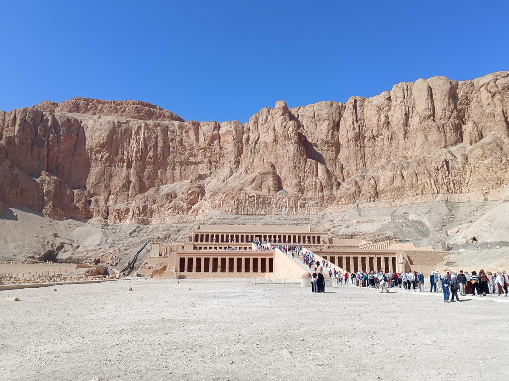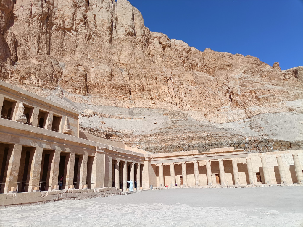 告别了帝王谷,怀着对另一段历史的好奇,我们奔向女王庙。女王庙,这座承载着女王哈特谢普苏特传奇一生的建筑,就静静地矗立在那里,等待着人们去揭开它神秘的面纱。
