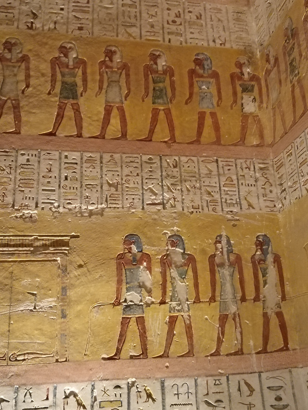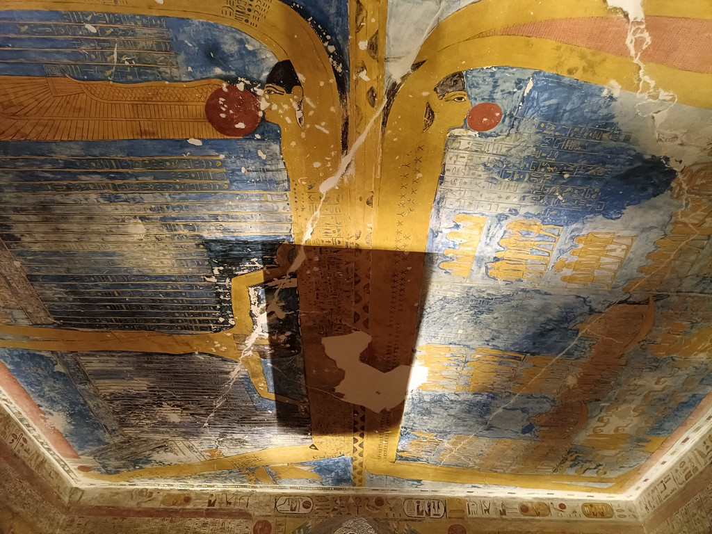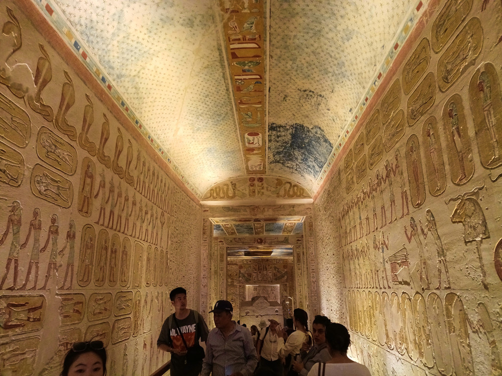 怀着激动的心情,我们随着熙熙攘攘的人流,走进了其中一座墓穴。墓穴内幽深陡长,像是一条通往另一个世界的通道。当那精美的墓穴壁画映入眼帘时,我完全被震撼了。那些壁画的色彩,历经千年的时光洗礼,依然鲜艳夺目。红色如燃烧的火焰,象征着生命的热情;蓝色似深邃的夜空,寓意着永恒的神秘。线条细腻流畅,每一笔都像是在诉说着一个古老的故事。