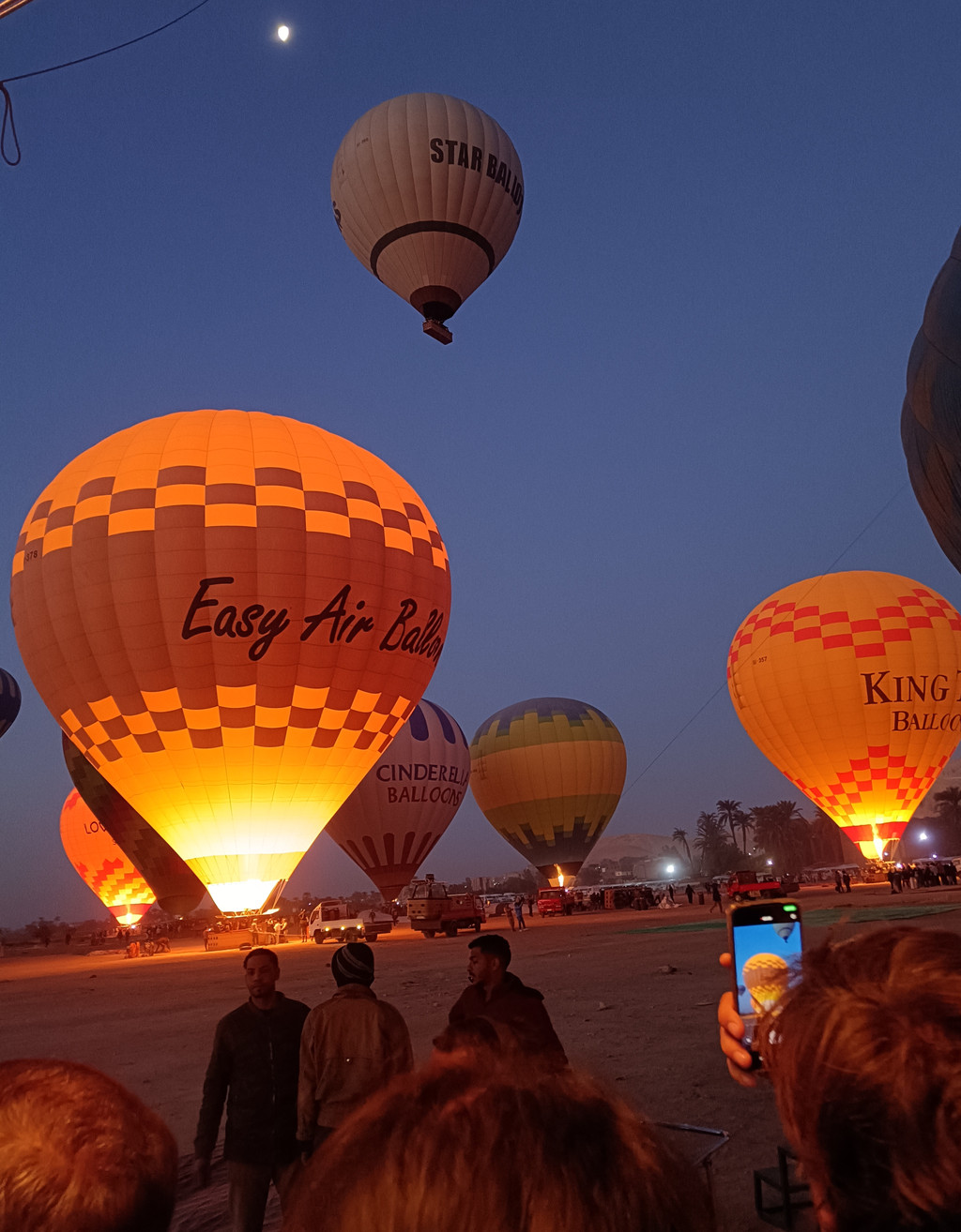 天还未亮,四周一片寂静,仿佛整个世界都还在沉睡,我们就迫不及待地从斯坦根贝格酒店出发,奔赴这场与日出接吻的浪漫之约。前往尼罗河畔的路上,大家都怀揣着期待,低声交谈着即将开始的热气球之旅。抵达尼罗河畔时,月光温柔地洒在宽阔的河面上,河水波光粼粼,宛如无数细碎的钻石在闪烁,美得让人屏住呼吸。