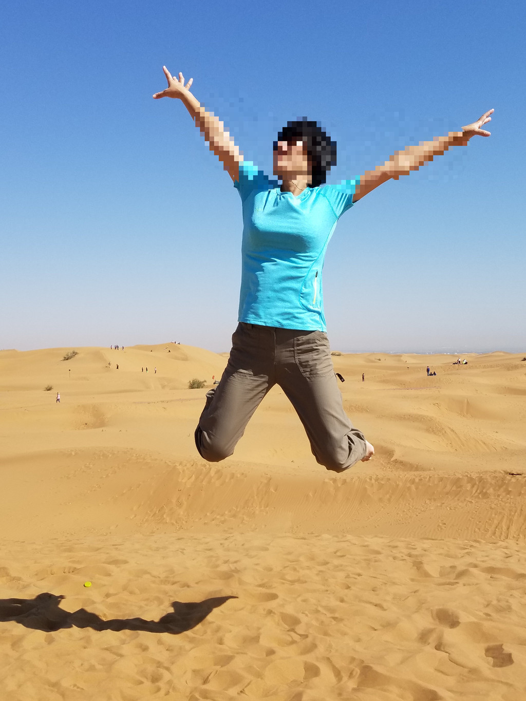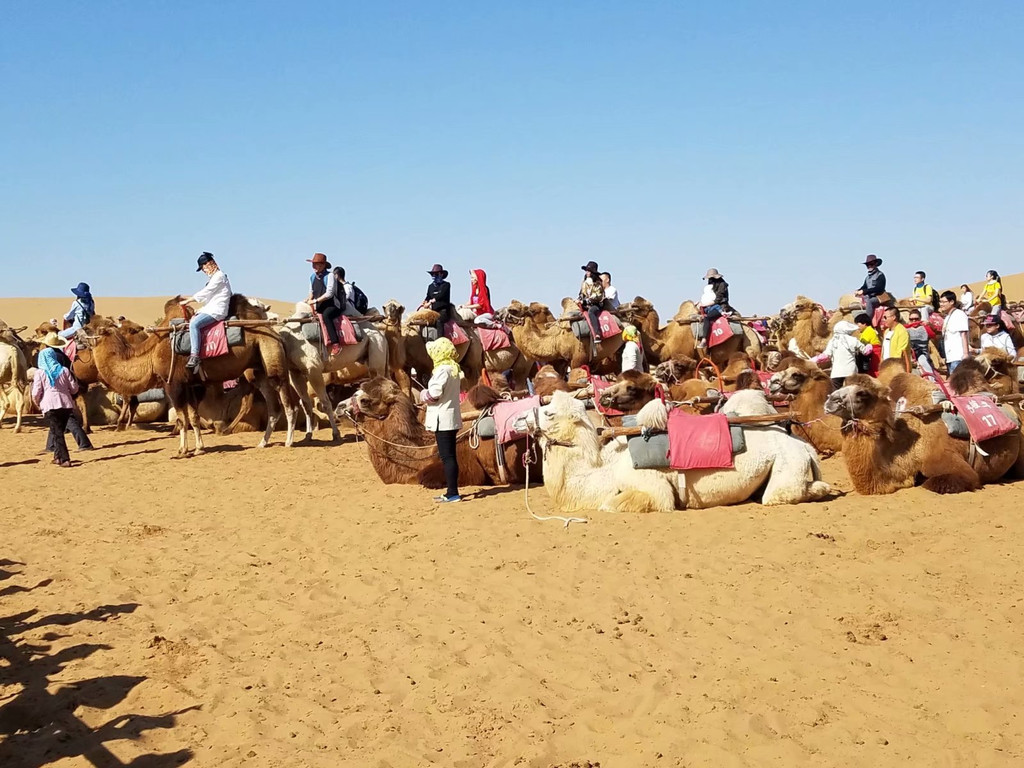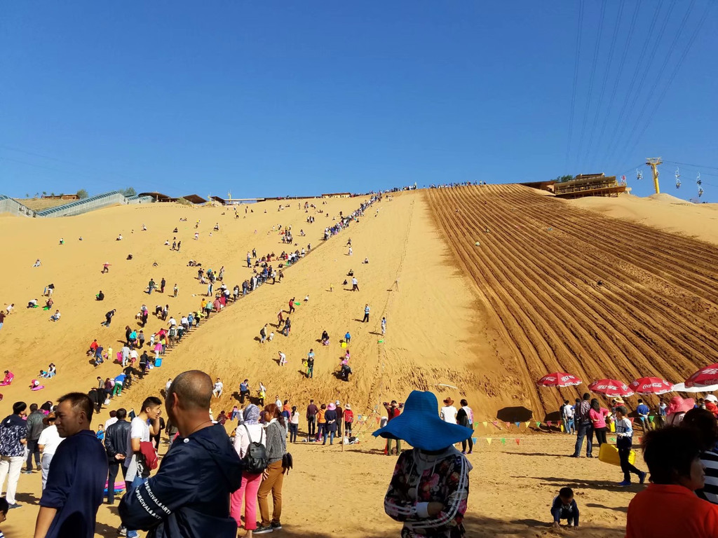 早早起来,在酒店旁的特产店买了不少的枸杞,感觉物美价廉。早知沙坡头,何必去沙湖,这是我进入景区的第一感受。恨自己没有足够的勇气和力气,对着沙坡望而生畏,没敢尝试爬沙而上,乘龙梯从黄河区迈进沙漠区,骑骆驼进入沙漠腹地,光着脚丫子,各种撒欢,各种POSS