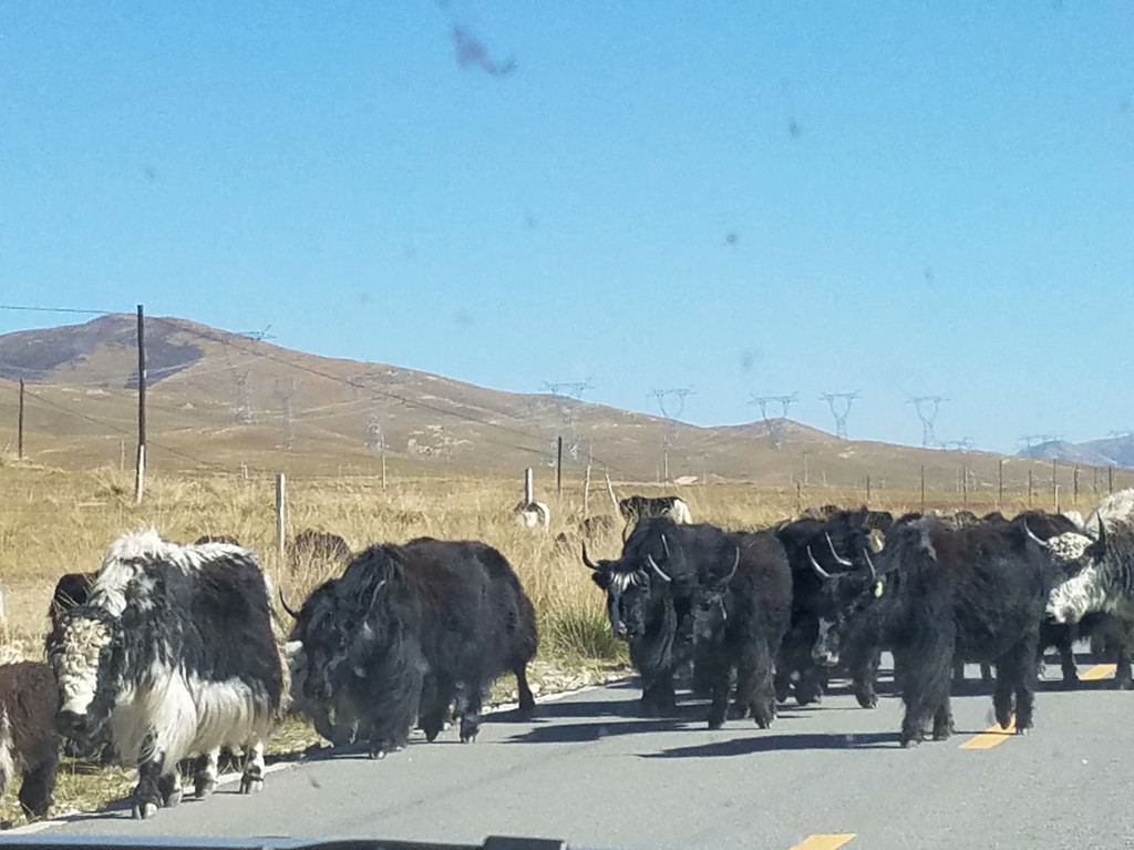 路上散步的牦牛