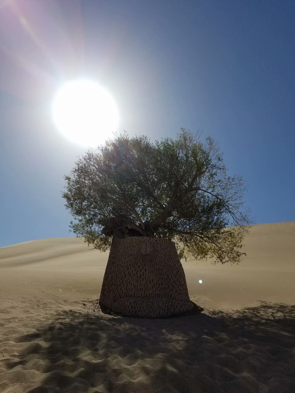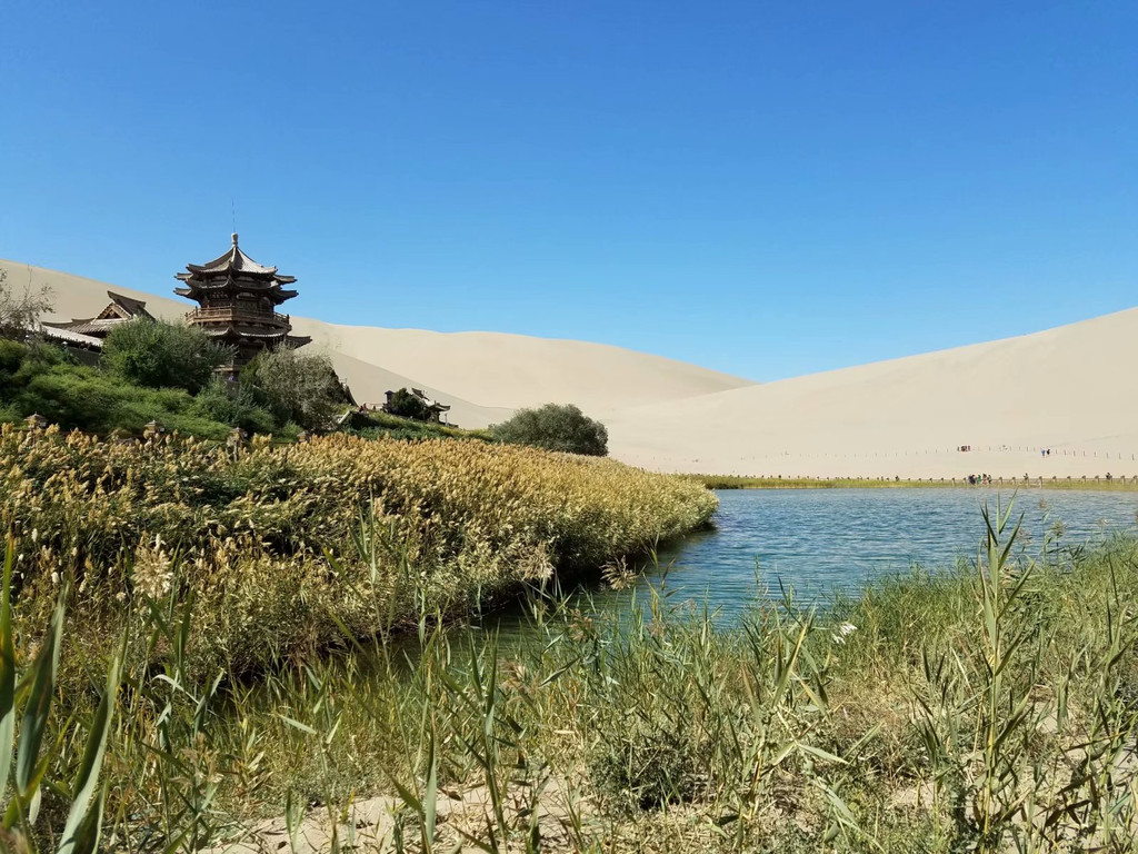 茫茫大漠之中,那一眼泉,生机,静谧,水清澈,可见鱼。那一棵古柳,看过往来客,吟古今之曲。原有一古寺,毁掉了,重建。沙中有泉,已是奇妙,沙不落泉,泉水清澈,更显神奇。