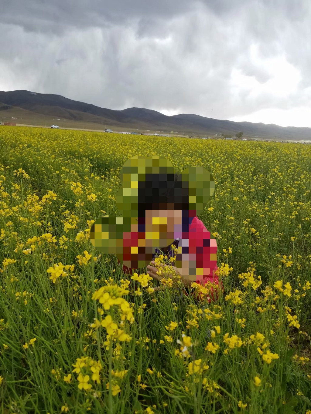 在塔尔寺,已经多少有了高反的现象,气短心虚,喝一碗当地的牦牛酸奶,放慢脚步,逐渐恢复正常。进入寺内,看到身披袈裟的喇嘛,五体投地的信徒,充满好奇的游客,嘈杂中更显安静,熙攘中更显庄严,堂内不灭的长明灯,跳闪着神圣的光亮,把一尊尊佛像笼罩在神秘又飘渺之中,心中怀有敬畏,不敢有丝毫造作。去往青海湖的路上,时不时的有成群的牦牛在路上散步,只有车让牛的份。十月的天气,在这边已是很冷了,一路伴着雪山,来到湖边,路边已没有大片的油菜花,牧草也已枯萎。天晴一阵阴一阵,风呼呼的刮着,游人很少,但并不影响我们的好心情。更幸运的是,一片像是被遗忘的油菜花映入我们眼帘,在这个寒冷的下午,像是特意为我们准备的。远处乌云密布,一道彩虹挂在空中,一群鸟儿排着队向远处飞去,远处的雪山,清澈的湖水,漂亮的我们,哈哈~