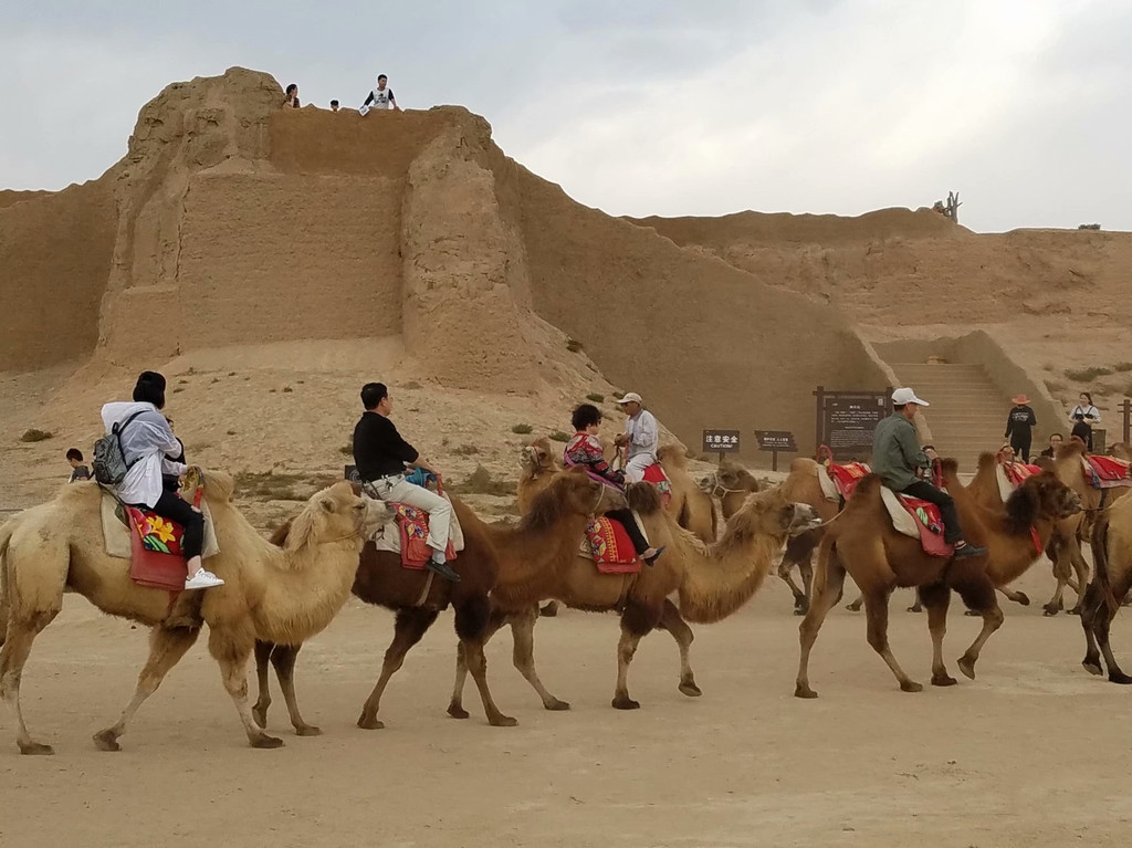 第一站便是黑城遗址。黑城遗址是古丝绸之路上现存最完整、规模最宏大的一座古城遗址。步行而入,漫漫黄沙中,城墙,清真寺、礼拜堂等立于荒野之中。风吼着,刺眼的阳光,沙粒打在脸上,让人几乎睁不开眼镜,便连拍照都不能。不能想像,这里曾经是水土肥美、人声鼎沸……