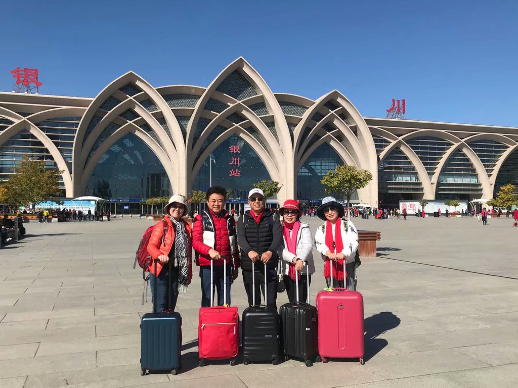 当晚准点到达银川河东机场。后乘坐机场大巴去市区(机场大巴和飞机到港是同步的,不必担心太晚无车),每人20元,唯一缺点是按点发车,要等待。居住点在火车站附近,因为天色已晚,大家又有行李故打车一个起步价9元到达旅社。注意了,旅行社接机一律100元一人,此钱可省。