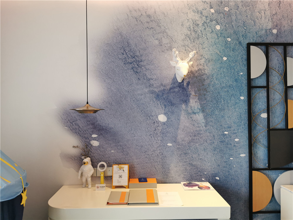 思绪还没被拉回来,又被房间里的景象震慑住了,地毯就像一条银河,我踩在小星星上,就像飘在太空中哟。