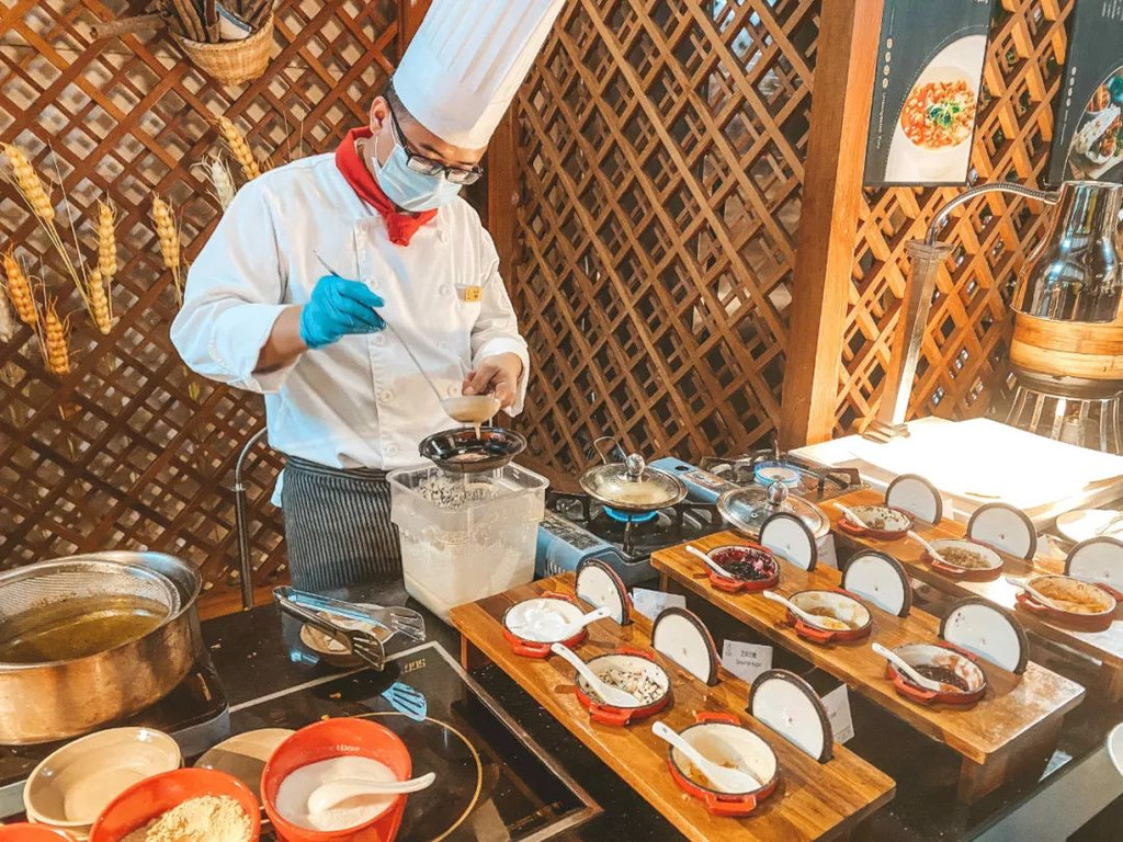 我加了849元体验“一价全包”活动,不用想中午吃什么、晚上吃什么想到头秃,还有夜宵可以吃,是峨眉山出了名的夜抄手、担担面哟,亲子乐园随便耍、氡温泉随便泡、鸡尾酒随便喝……不说了,我又忍不住想去住了 。