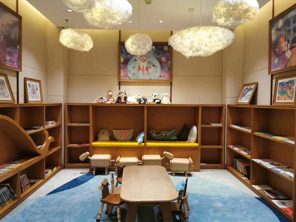 我觉得它有点像其他酒店的大堂吧,供人看书喝茶聊天打盹儿,还有遛娃。
