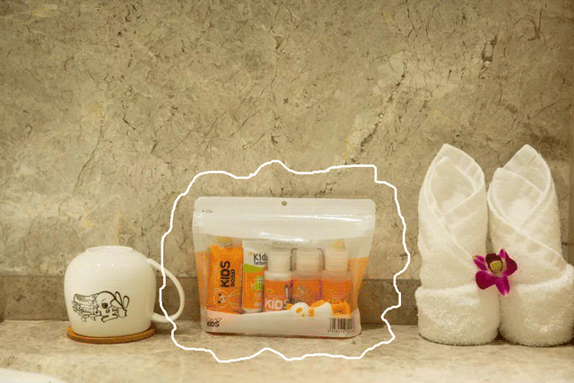 讲真,千元+的价格,洗漱用品还是不能太随便,一套欧舒丹,嗯,档次够了滴,另外还单独配了一套香橙味的儿童装,用不完可以带走哟。
