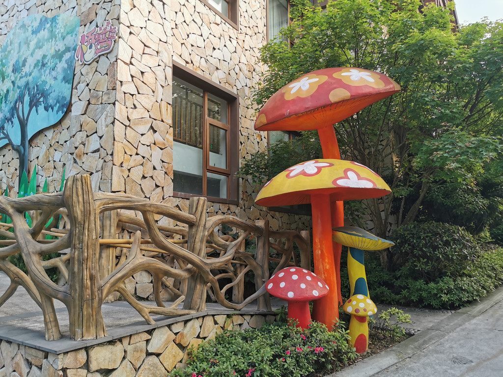 坐着摆渡车左拐右拐,拐到了一座蘑菇小屋前~墙裂建议拖着行李牵着娃的“老母亲们”别动散步过去的歪心思,因为里面真的很大,真的会一不小心就迷路滴~~