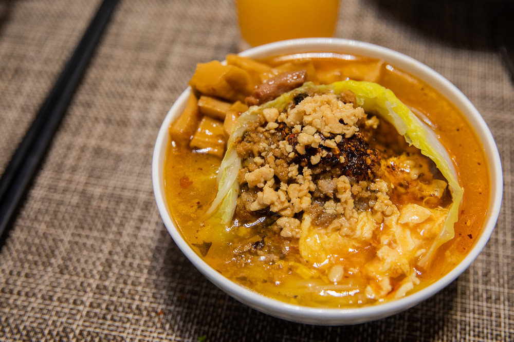 早餐很有特色,峨眉山的咔饼和豆腐脑都有,豆腐脑还有牛肉和酥肉不同口味。