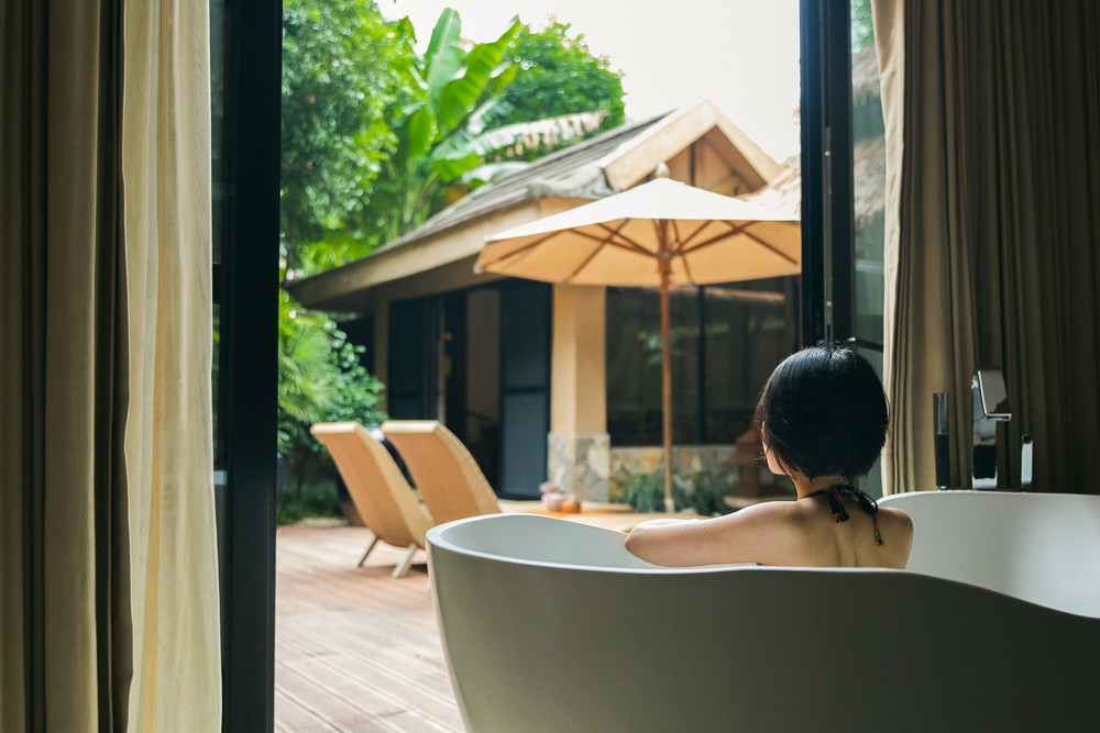 浴室的超大浴缸也是非常舒服,就算只是呆呆看着院子也感觉十分放松。