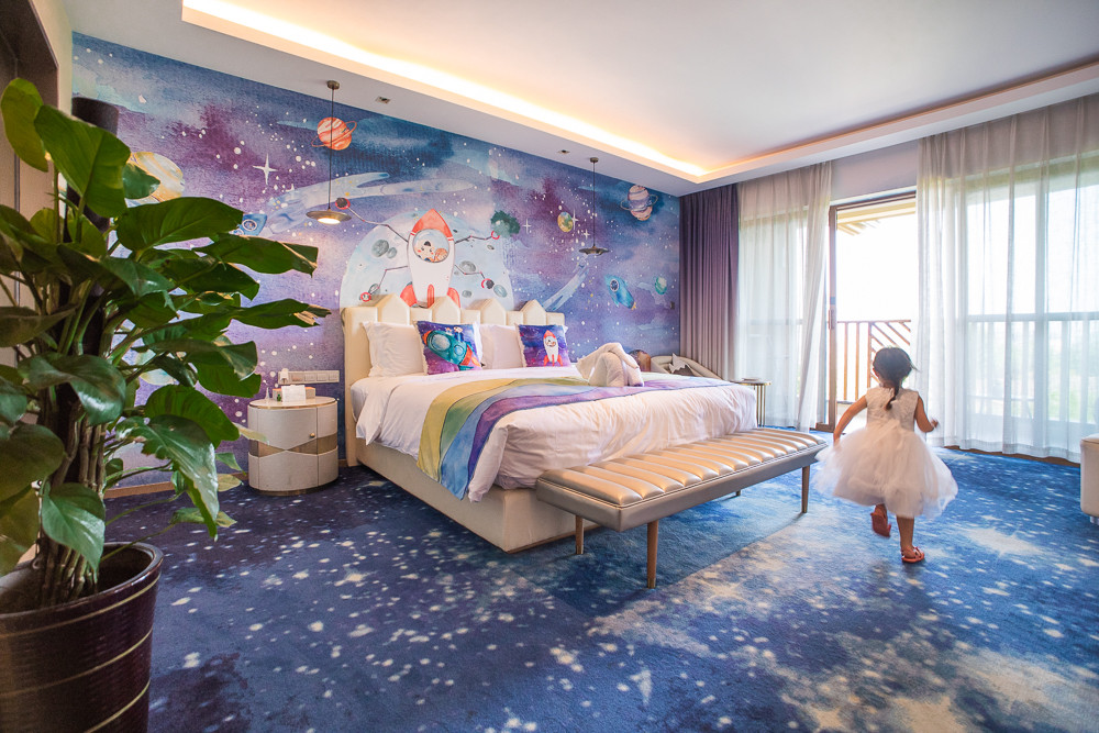 让小Eva最惊喜的就是这个星空套房,一进门跟上了发条一样。