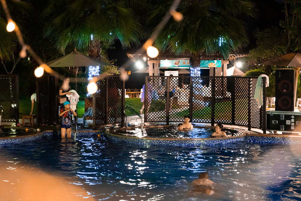 晚上小朋友们在泳池里耍累了,就换大人在泡池里放松了~