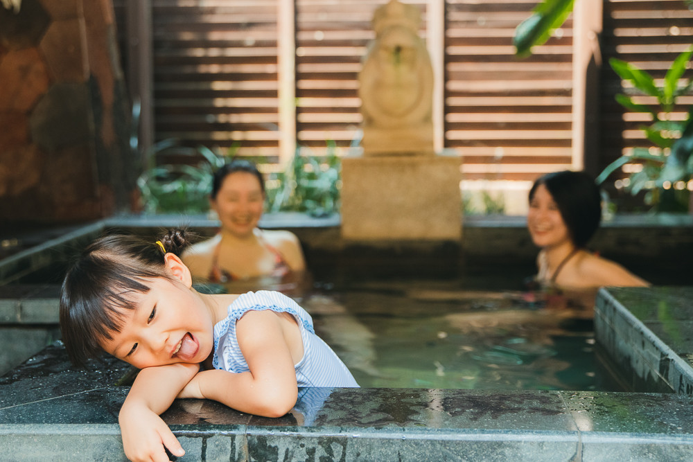 晚上小朋友们在泳池里耍累了,就换大人在泡池里放松了~