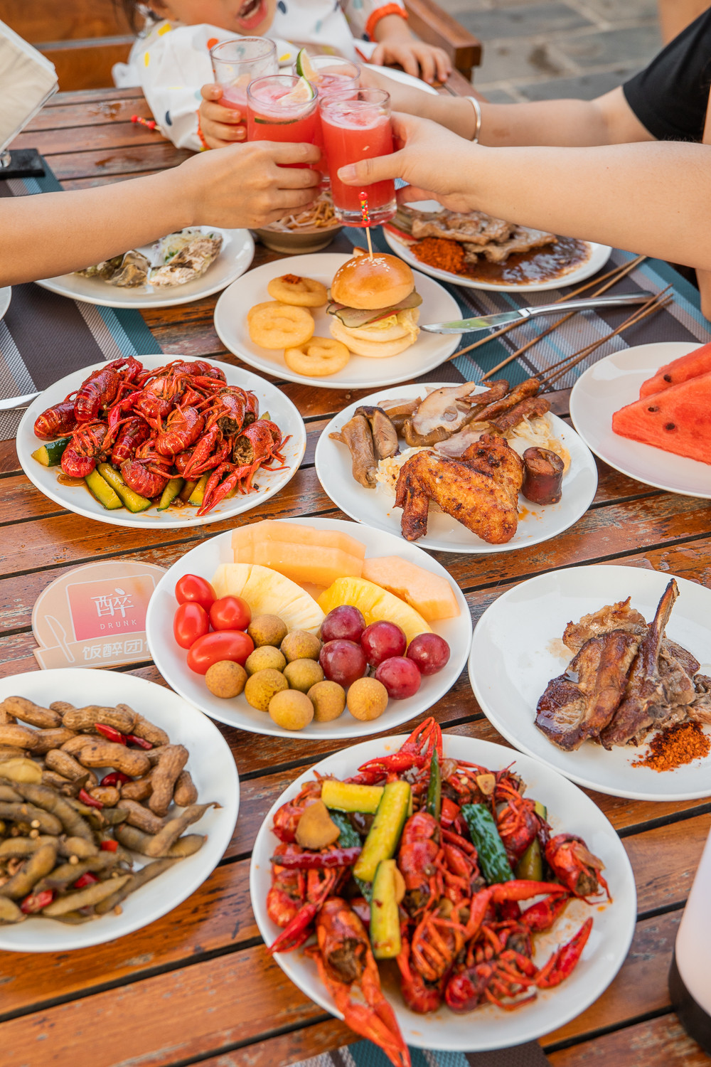 小龙虾、卤菜、牛排、蒜蓉生蚝扇贝、烤串儿、水果……都还不错。