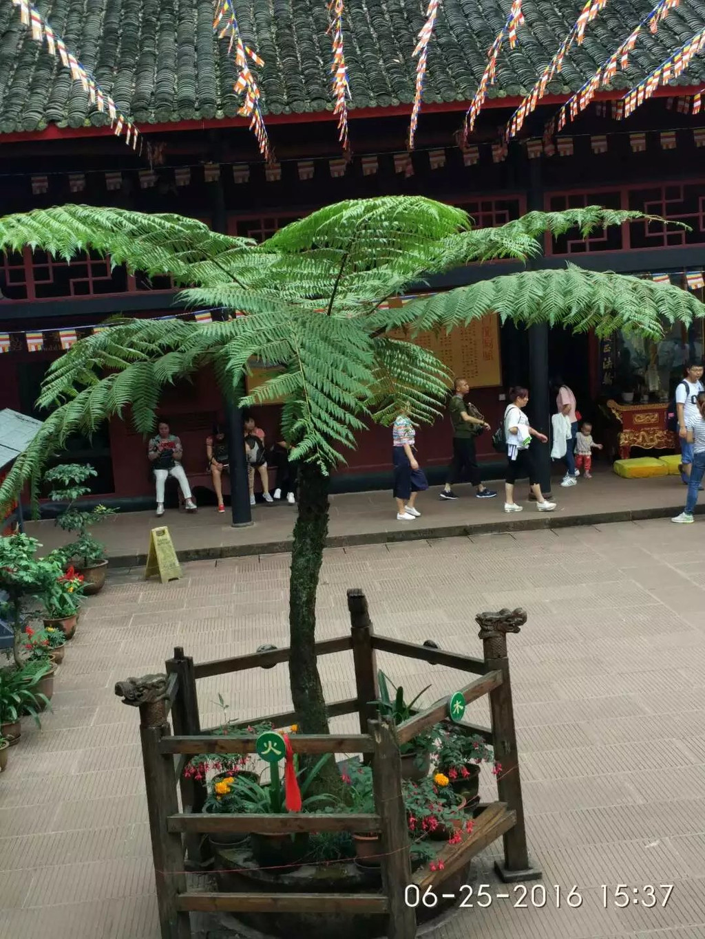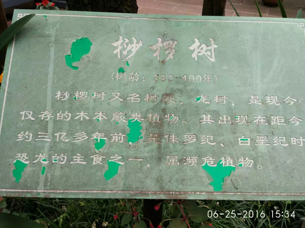 被称为活化石的桫椤树,曾是侏罗纪、白垩纪时恐龙的主食之一,是当今仅存的木本蕨类植物,也是国家一级保护的濒危植物。白龙洞的这棵桫椤树,树龄已近四百年,看上去并不是很高,但是特别漂亮,亭亭玉立,似一把张开的绿伞!