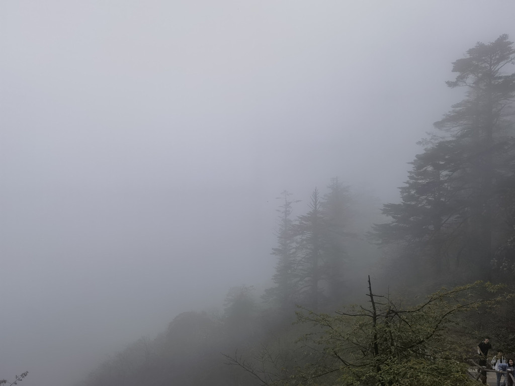 注:在游客中心午饭后休息了一下,坐车直接到雷洞坪已经4点左右了。安顿下来,带长辈附近随意走走,了解了下第二天上金顶路线(毕竟天黑的时候不好找方向),再逛了逛雷洞坪旁临近山崖的圆觉寺。这个时候起雾了,远眺山景也很美丽。吃过晚饭早早的休息了,毕竟第二天要早起上金顶。