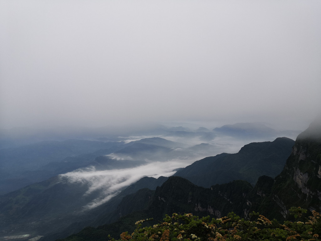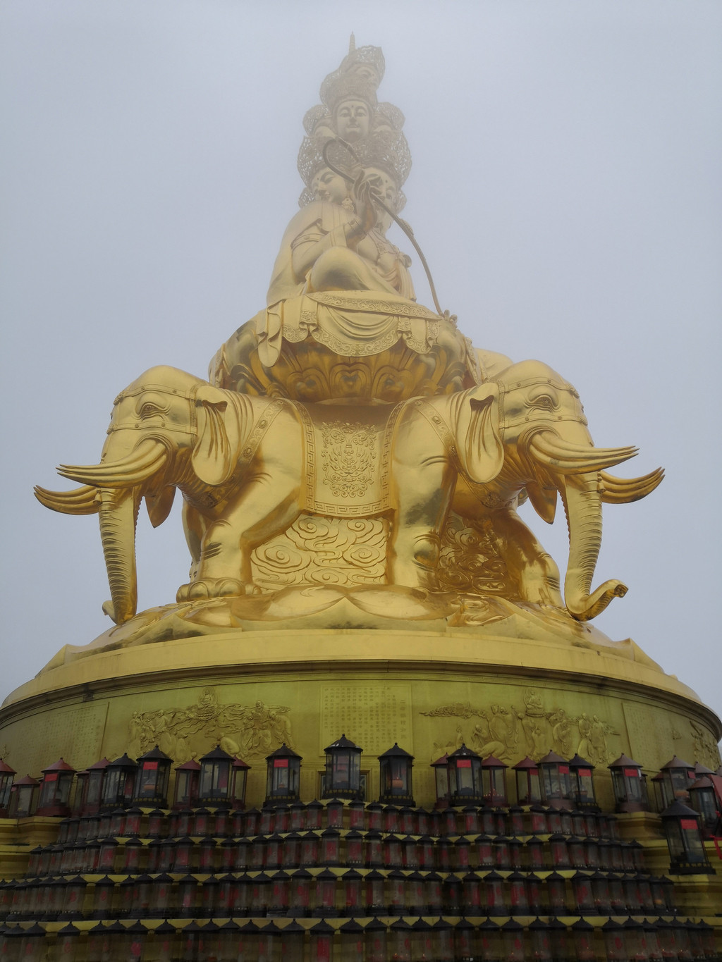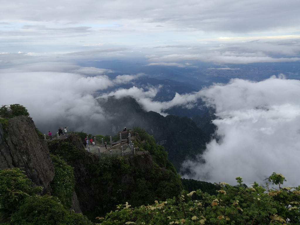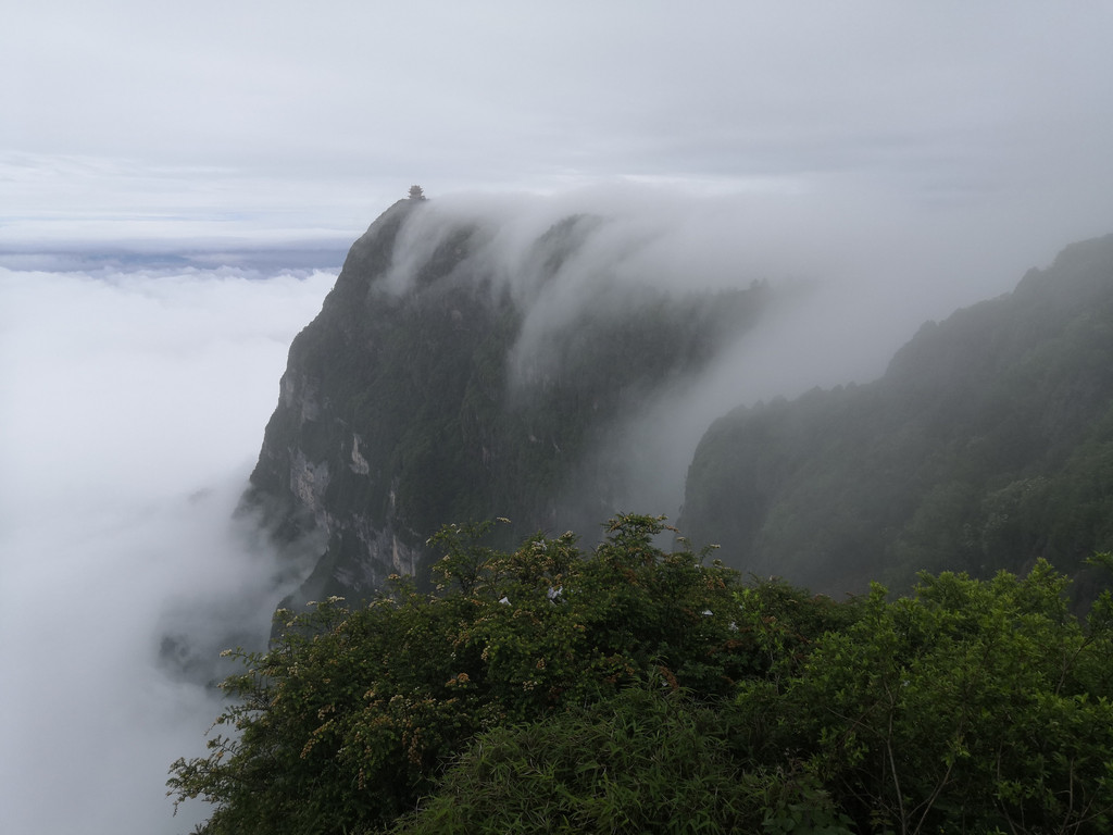 一路小雨,一路懊悔,一路失望,在雷洞坪时还下着小雨,慢慢的雨小了,慢慢的雨又停了,一缕白光,带来了希望 ,坐上最后一段缆车,随着高度不断往上,远处居然看到了白云,兴奋,不予言表,终于弥补了富士山的遗憾。缆车下来,徒步金顶,一看路上,峨眉山的半边天烟雾弥漫什么都看不见,半边天却是晴空万里,真绝了。真的不虚此行,人间仙境。