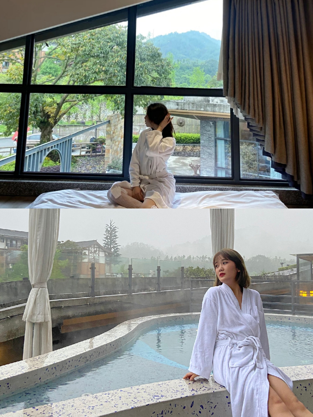 一边泡汤一边感受群山簇立,远眺如一副远山淡影图。会让人上瘾,流连忘返。