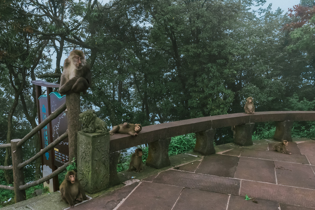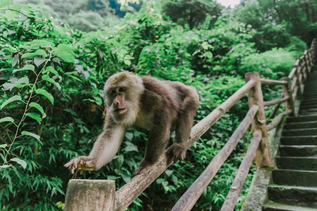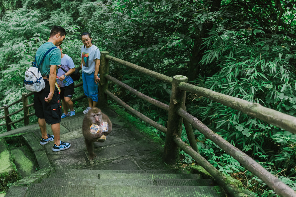 3. 关于藏猕猴,景区里有三段生态猴区:一线天-洪椿坪、洗象池、雷洞坪-接引殿。遇到猴子要保持一定安全距离,随身手机、相机等贵重物品要放好,手里不要提塑料袋,猴子会直接过来抢,所有饮食放背包里,休息时包不离身。登山前可以买一根竹竿(1-2元)作为登山杖、可以驱赶猴子,回程上车前竹竿会被回收。