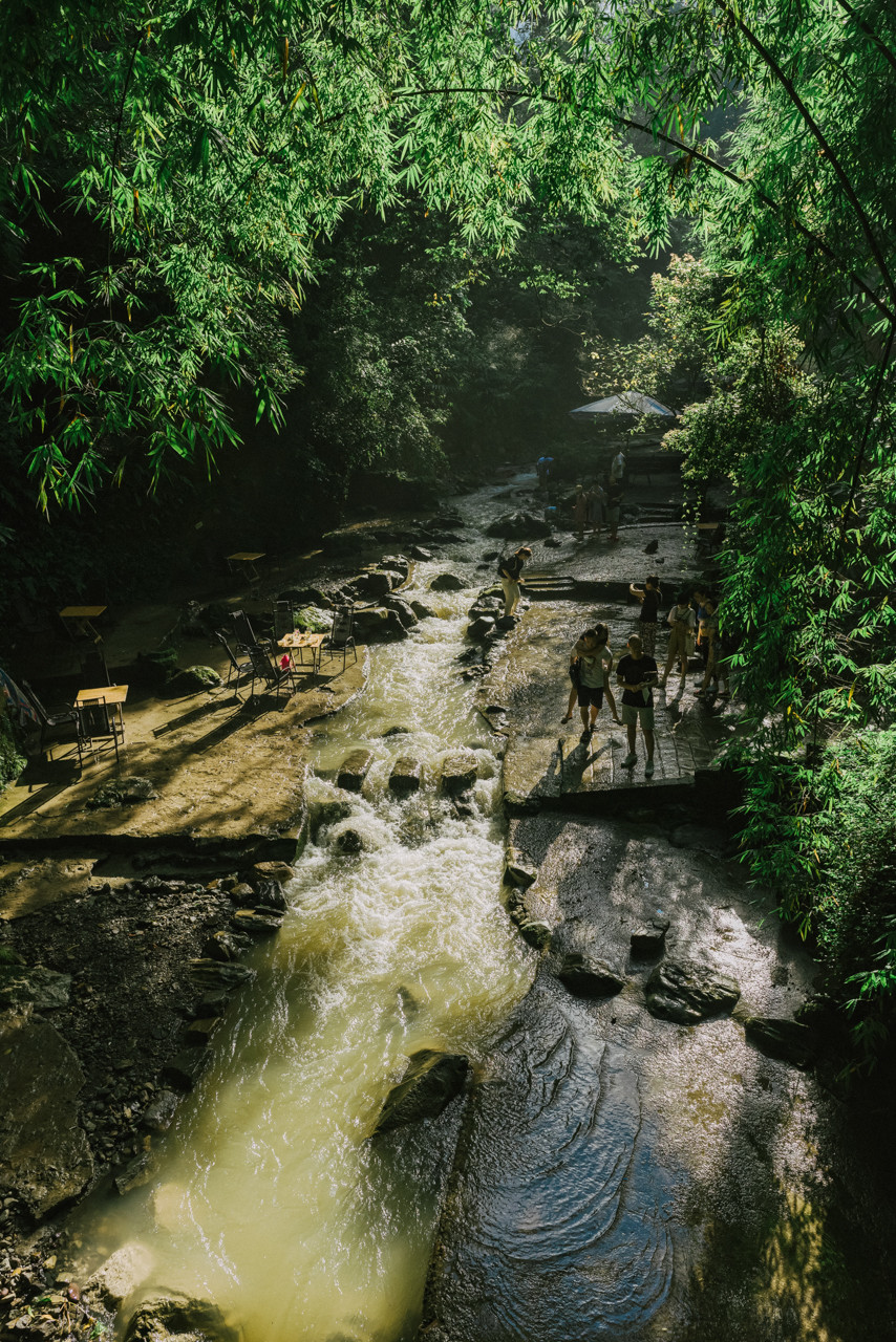 多数人从清音阁/五显岗(游客中心乘坐观光车到达,20元,徒步约12公里)开始徒步,沿路线一上山,回程在雷洞坪坐车下山(如果时间和天气允许,推荐全程徒步)。
