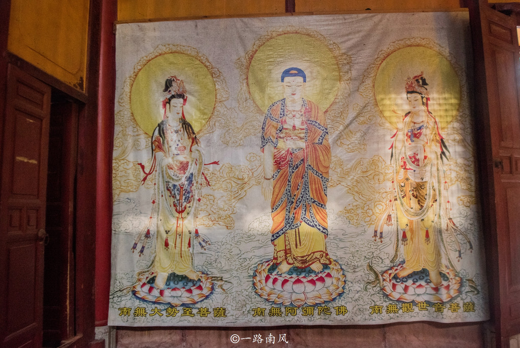 这是一座规模不大,但气势恢宏的佛教寺庙,前为三圣殿,后为大雄宝殿。