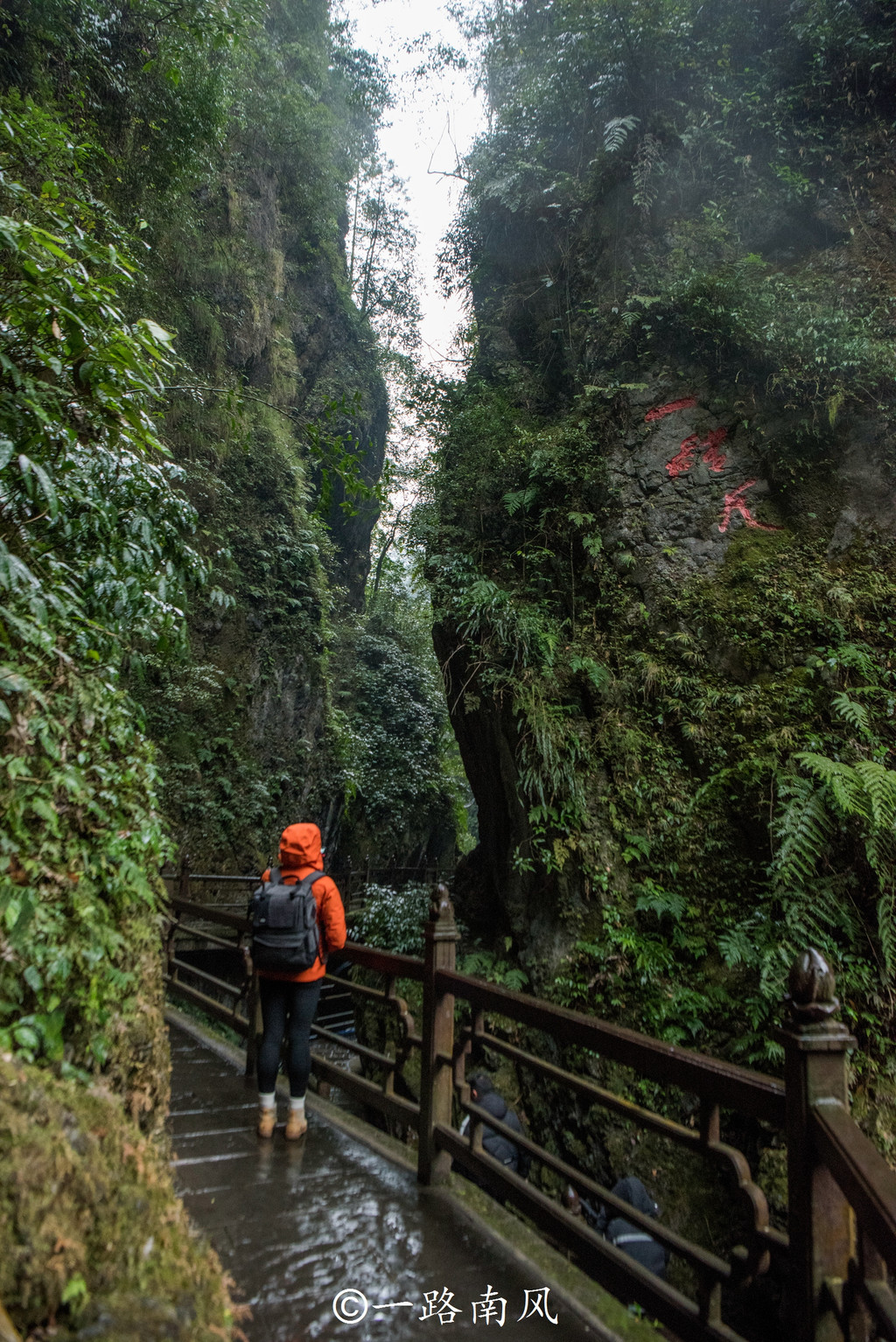 此刻抬头望天,但见两山夹峙的位置只有一条小缝,倘若晴天,阳光也只能通过这条小缝洒落在地面上。
