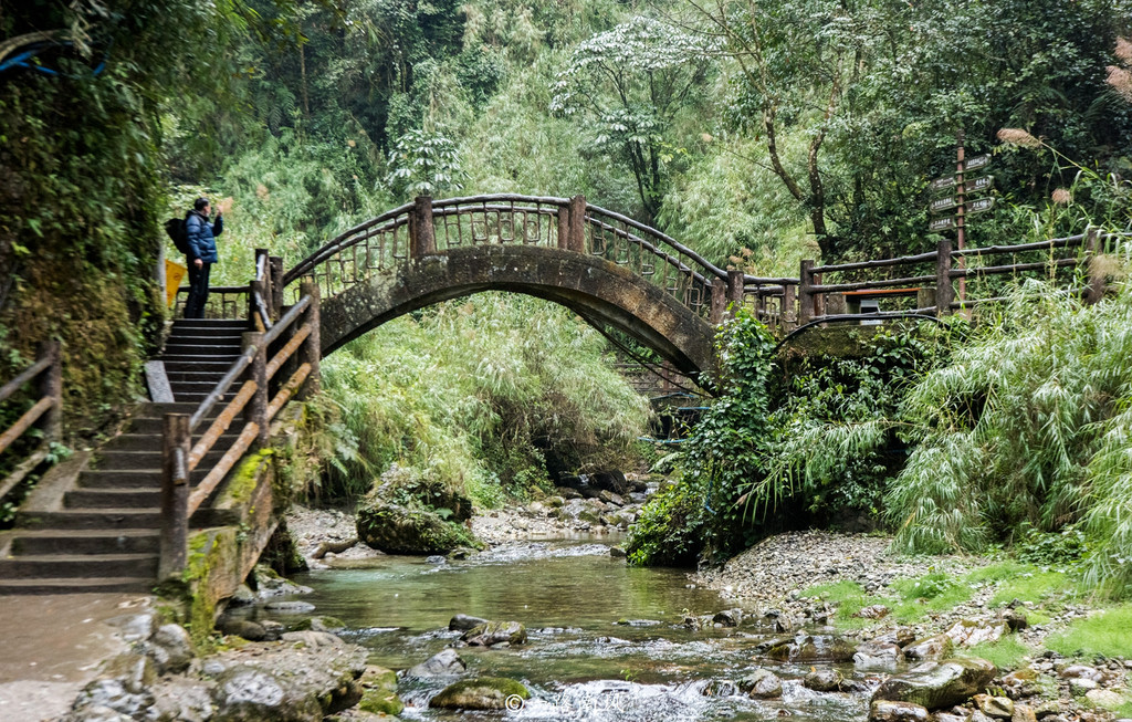 徒步线路浓缩了峨眉山人文游和自然风光旅游的精华,过程需要翻山越岭,走过各级阶梯和溪涧,沿途绿树成荫、鸟语花香,好不惬意。