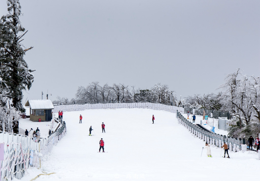 峨眉山滑雪场位于雷洞坪,海拔2400米,和金顶仅“一步之遥”,是四川省第一个滑雪场,于2022年被评为“川渝十佳滑雪胜地”,这里占地15亩,冬季平均气温保持在零下5度,积雪期长达4个月。