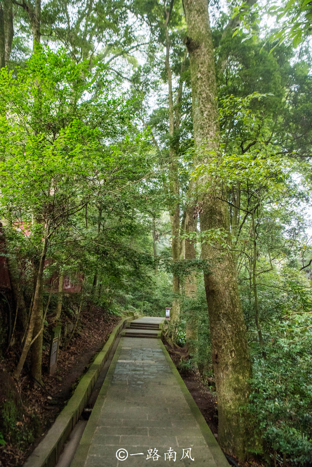 整座万年寺被茂盛的林木包围,入寺需要先走一段有点陡峭的台阶,步步向上有种朝圣的感觉。