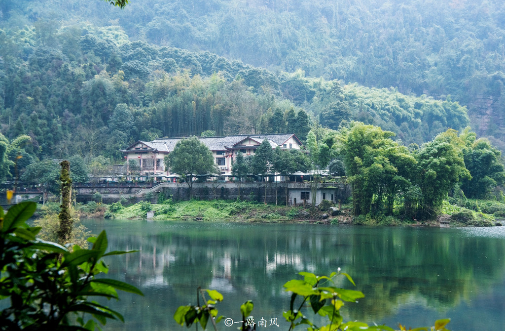 原本想继续往前走,但考虑到体能和时间问题,我们过了生态猴区再走过三座桥吃完豆花饭就原路返回了,经过清音平湖的时候走了一个小环线,但见山水相依,古色古香的建筑物倒映于平湖之上,清丽迷人宛如画卷,不觉沉醉,此时虽然腿部已经有点轻微的酸痛,但美景当前完全忘记了不适。