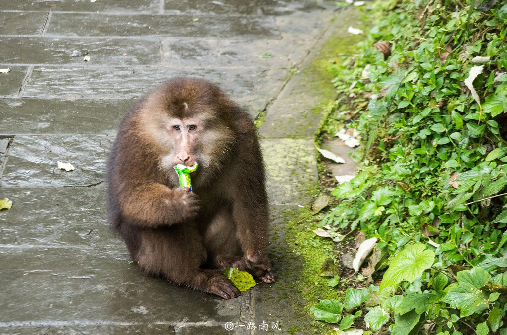 继续往前走,来到峨眉山自然生态猴区,这里是互动性最强的区域之一。