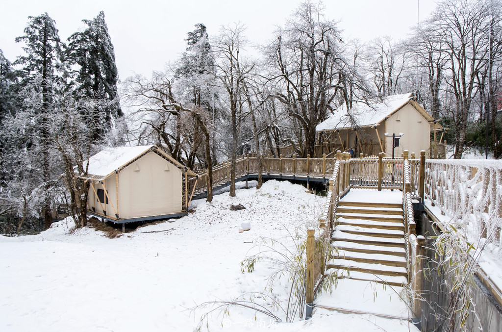 今年是“雷洞烟云 星空营地”首次进入冰雪季,入住各式特色木屋和主题帐篷,夜数星河,日赏雪景,假期堪称完美。
