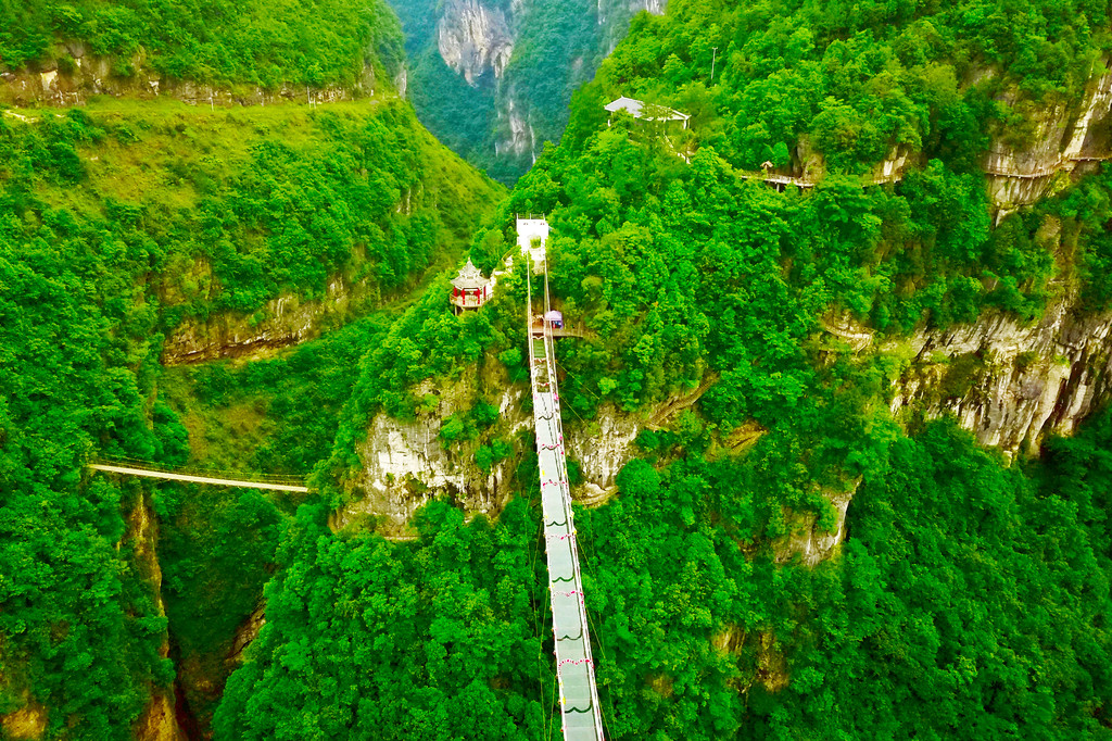 野三河旅游区又叫野三峡,位于建始县,包括花坪镇的黄鹤桥峰林和景阳镇的清江大峡谷以及登船上岸的清江明珠蝴蝶岩。也属于4A级景区,免门票,但清江大峡谷有70元的船票(一天两班,上午9:00和下午2:00)是必消。另外,黄鹤桥峰林有30元/人的垂直电梯和40元/人的上山索道可以选择性消费。清江明珠蝴蝶岩则有30元/人的单人滑索、50元/人的水滑道(必须两人乘坐)和60元/人的玻璃桥可以选择性消费。