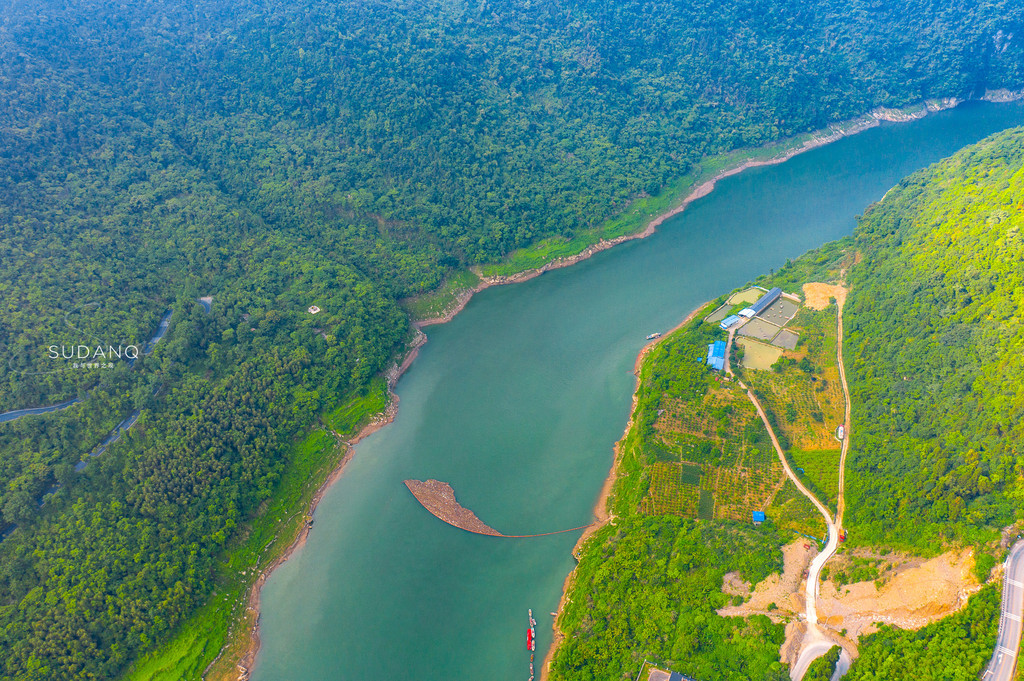 女儿寨度假酒店的地理位置非常优美,航拍之下,犹如一个静谧的童话小镇。
