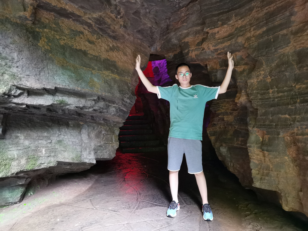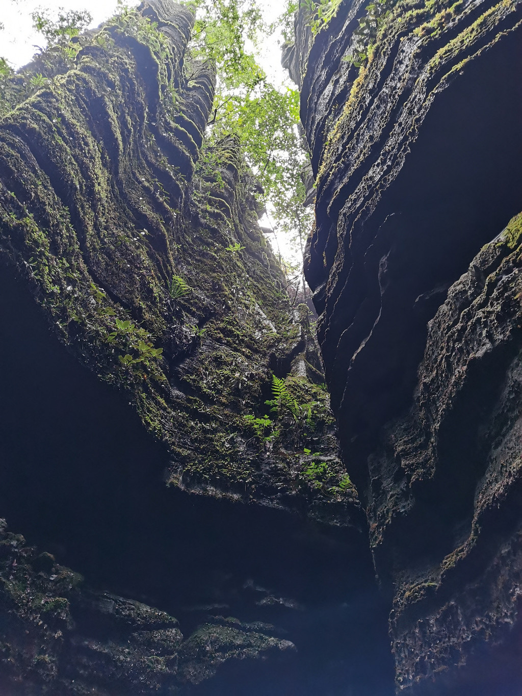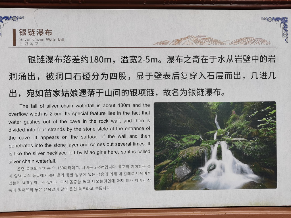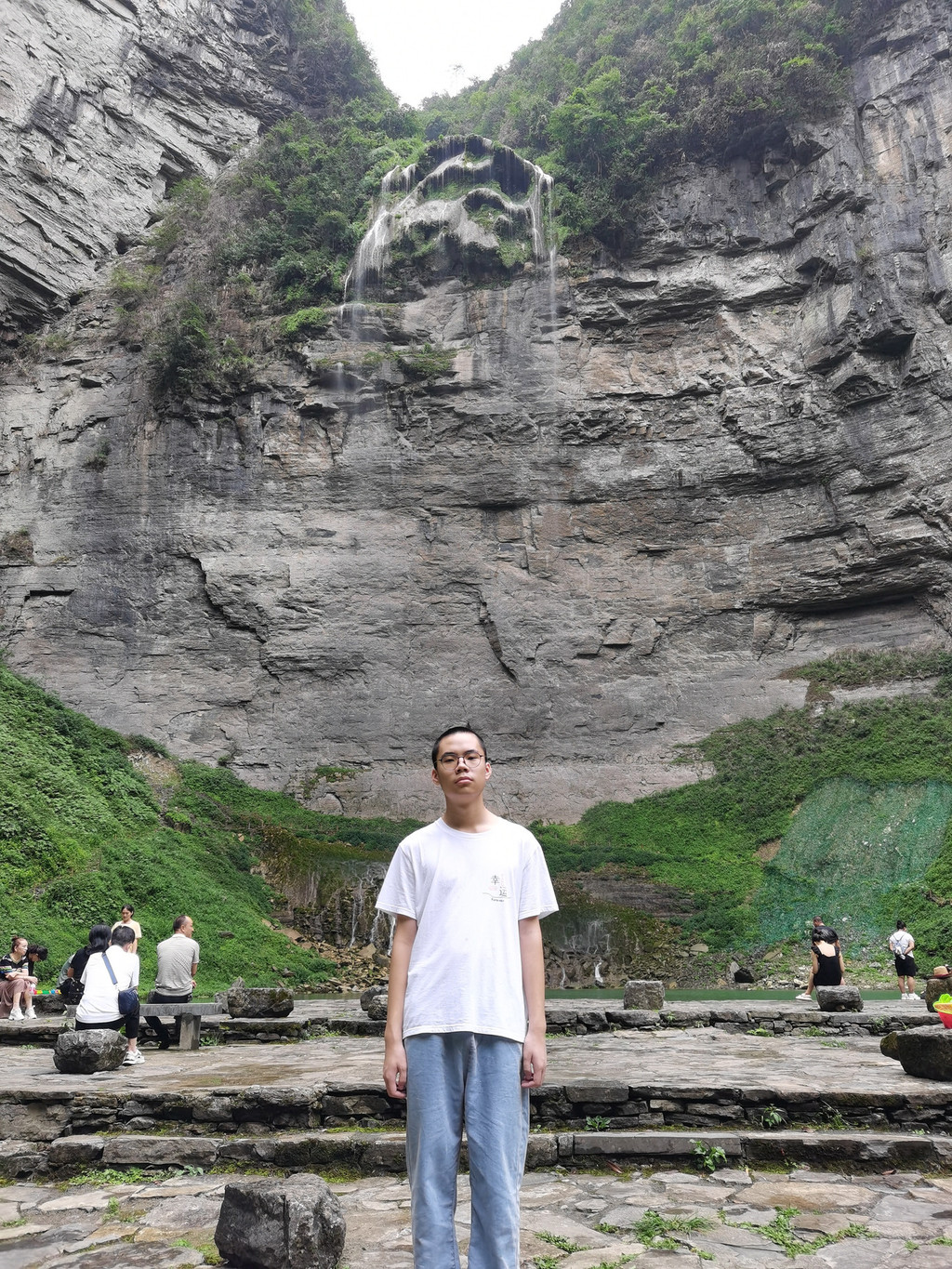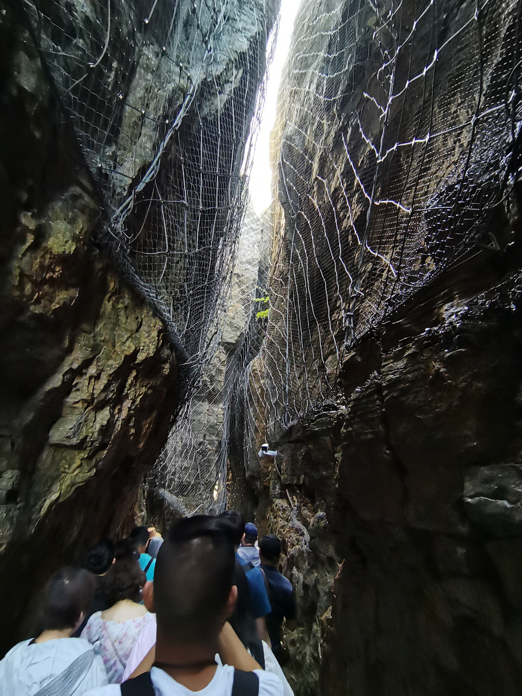 听说地缝走到尽头坐电梯上山顶后,还要在山顶烈日下走二公里才能到达出口,我们走到第三个瀑布后,便原路返回,逆行由入口出。再从索道排队处对面小门出景区,走两三分钟便回到客栈。这样是最最轻松的玩法。我们8点入游客中心,2点出来吃完午饭了。