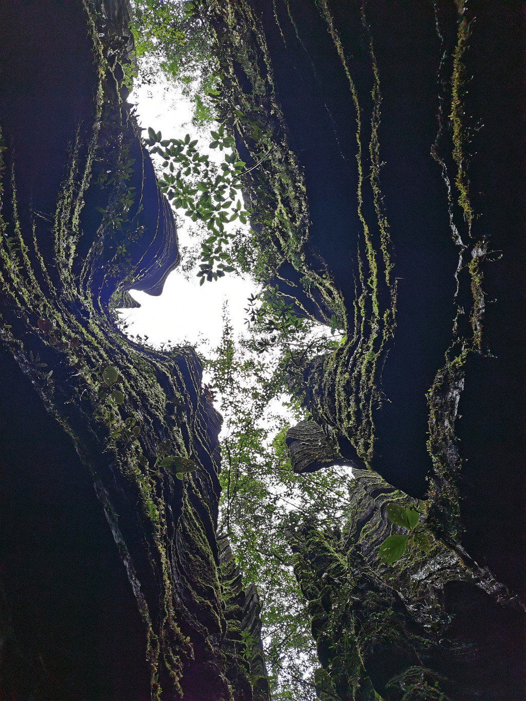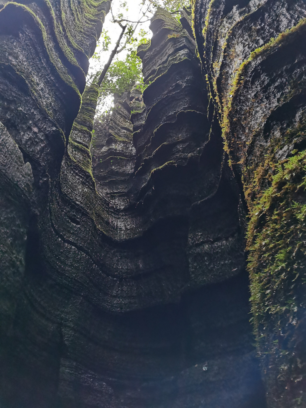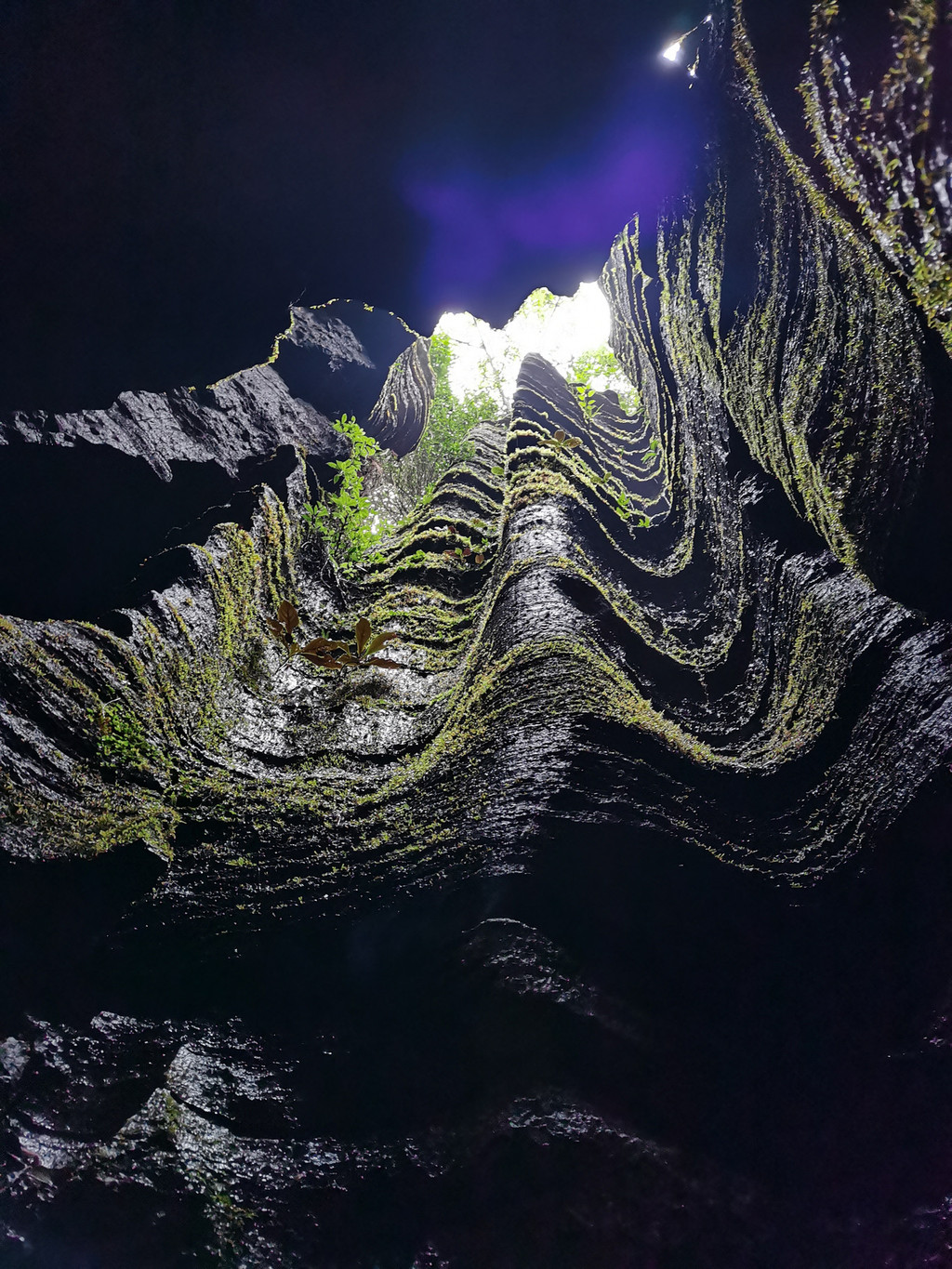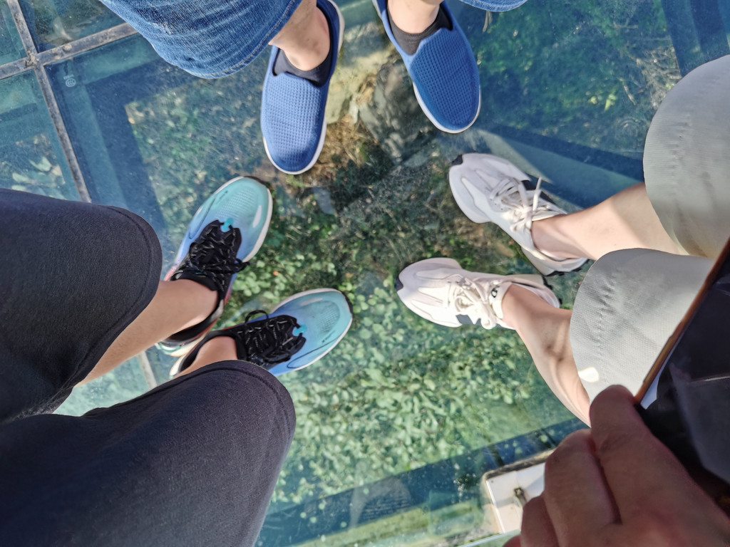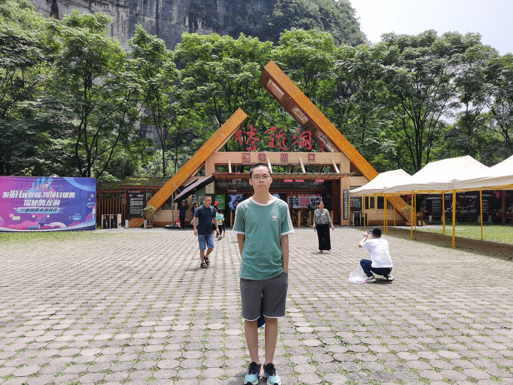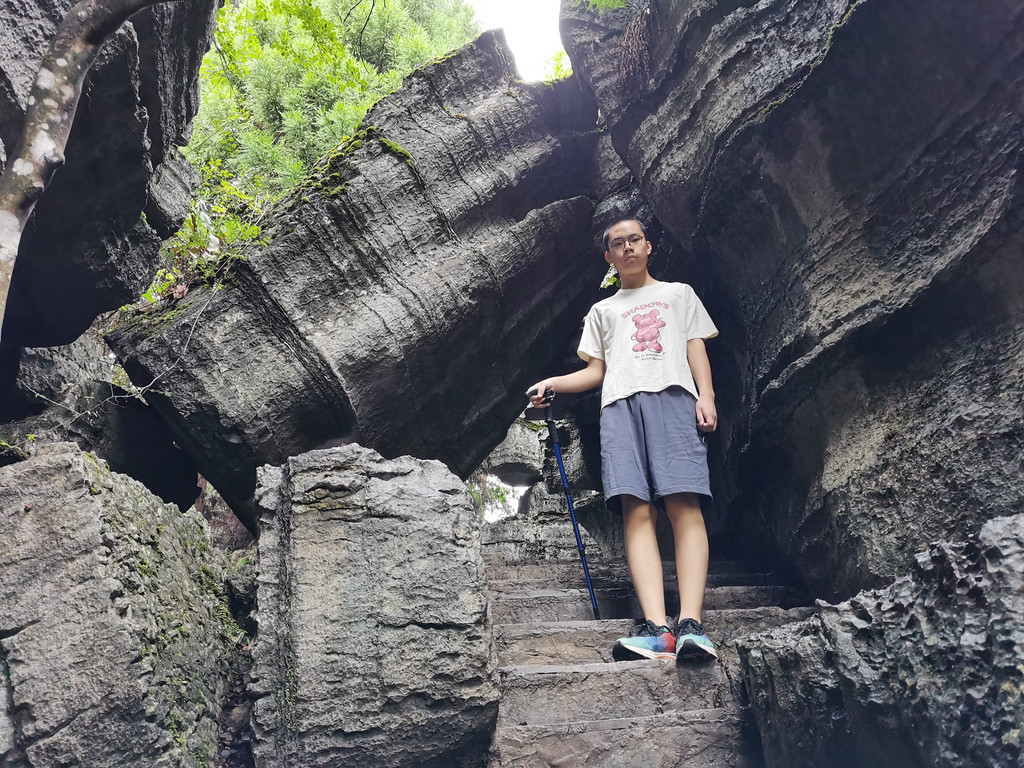 听说地缝走到尽头坐电梯上山顶后,还要在山顶烈日下走二公里才能到达出口,我们走到第三个瀑布后,便原路返回,逆行由入口出。再从索道排队处对面小门出景区,走两三分钟便回到客栈。这样是最最轻松的玩法。我们8点入游客中心,2点出来吃完午饭了。