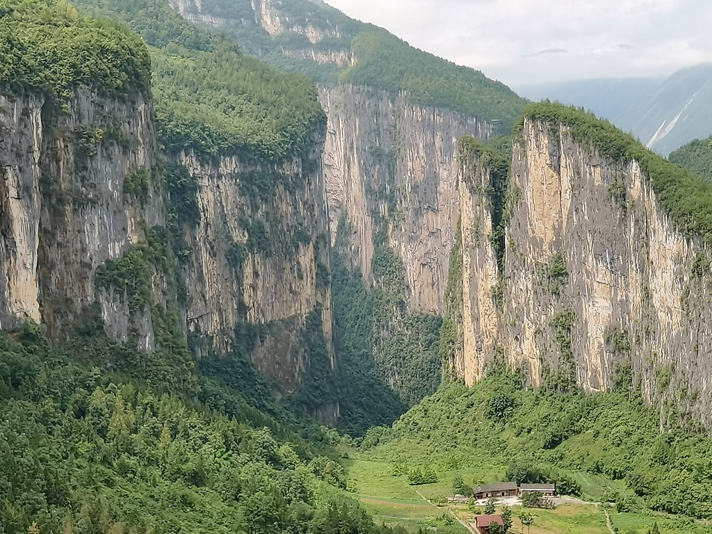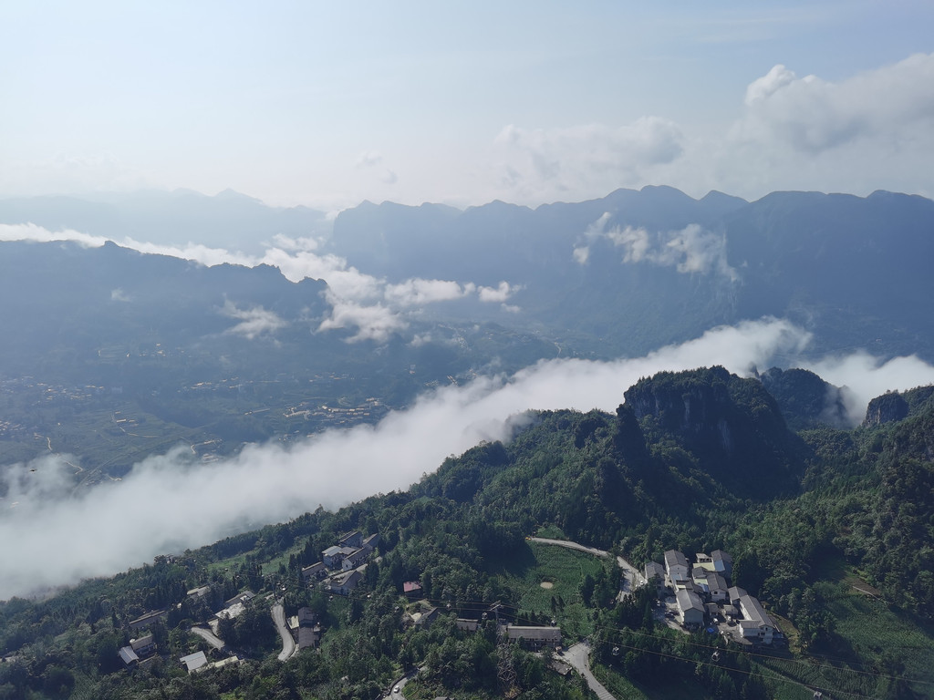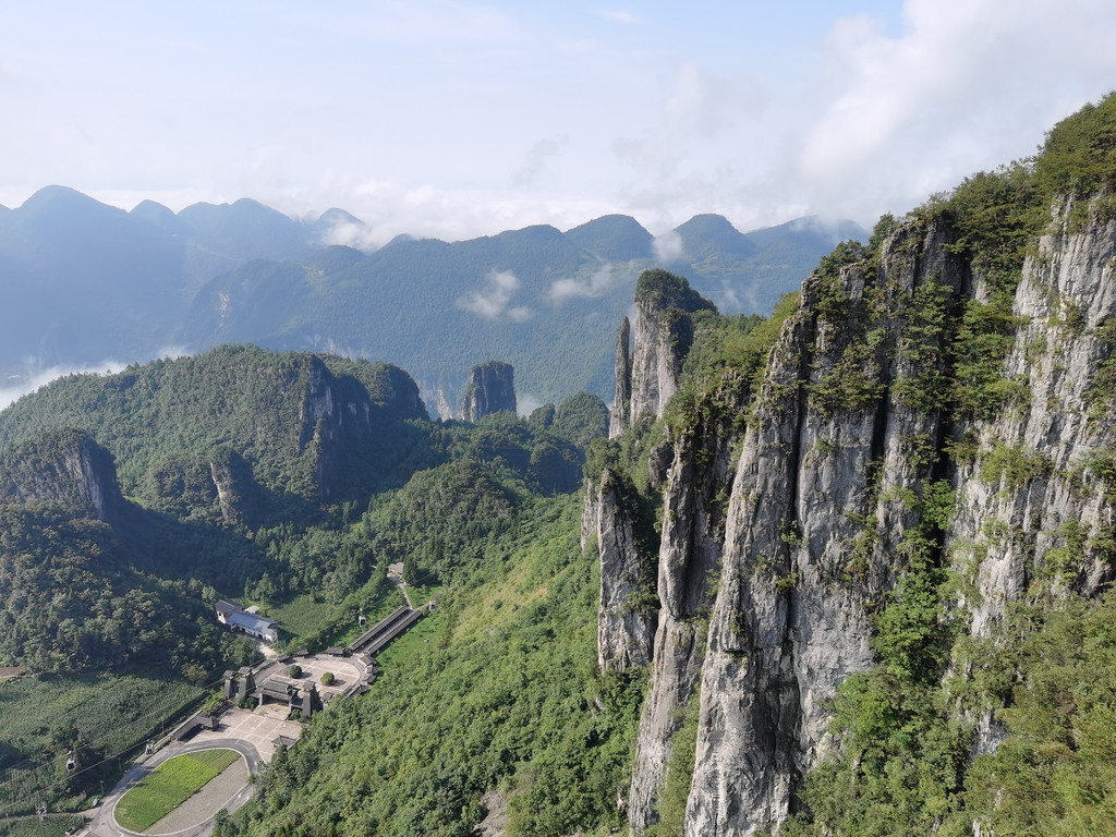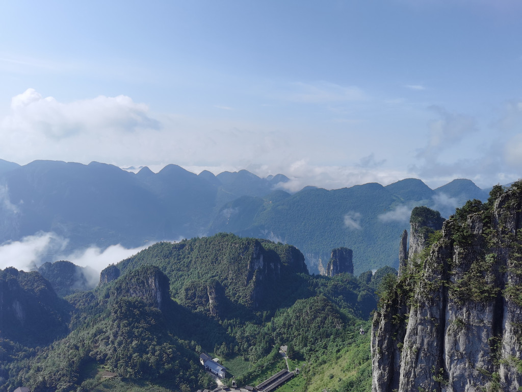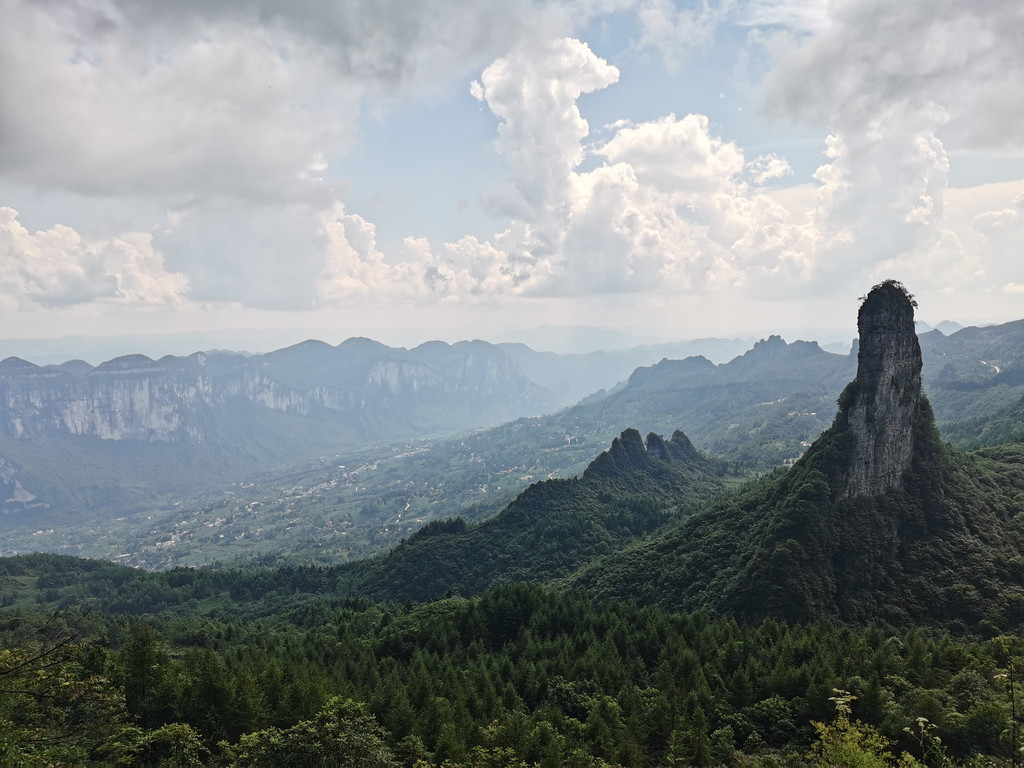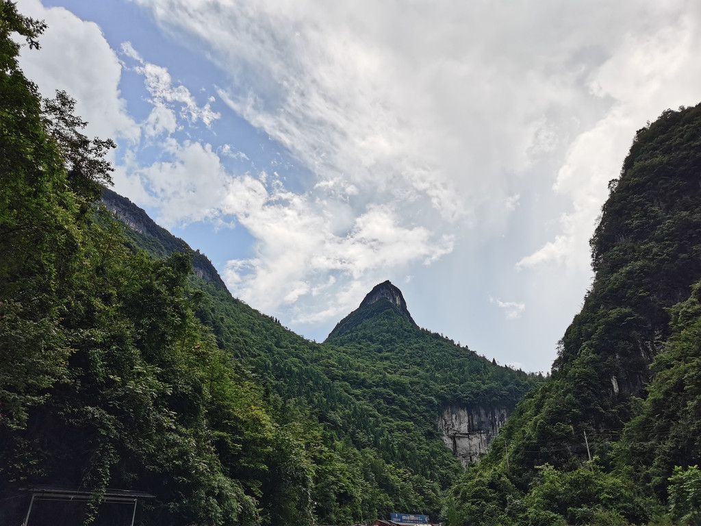 8号十点从梭布垭石林出发赴奉节,沿途都是山路,但风景秀丽,十一点半到达奉节旱夔门观景台,就在路边,可远眺天然形成的大山门。