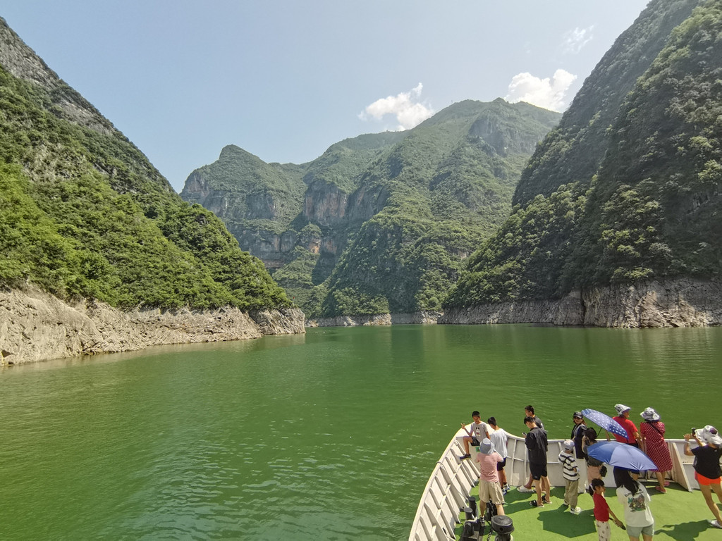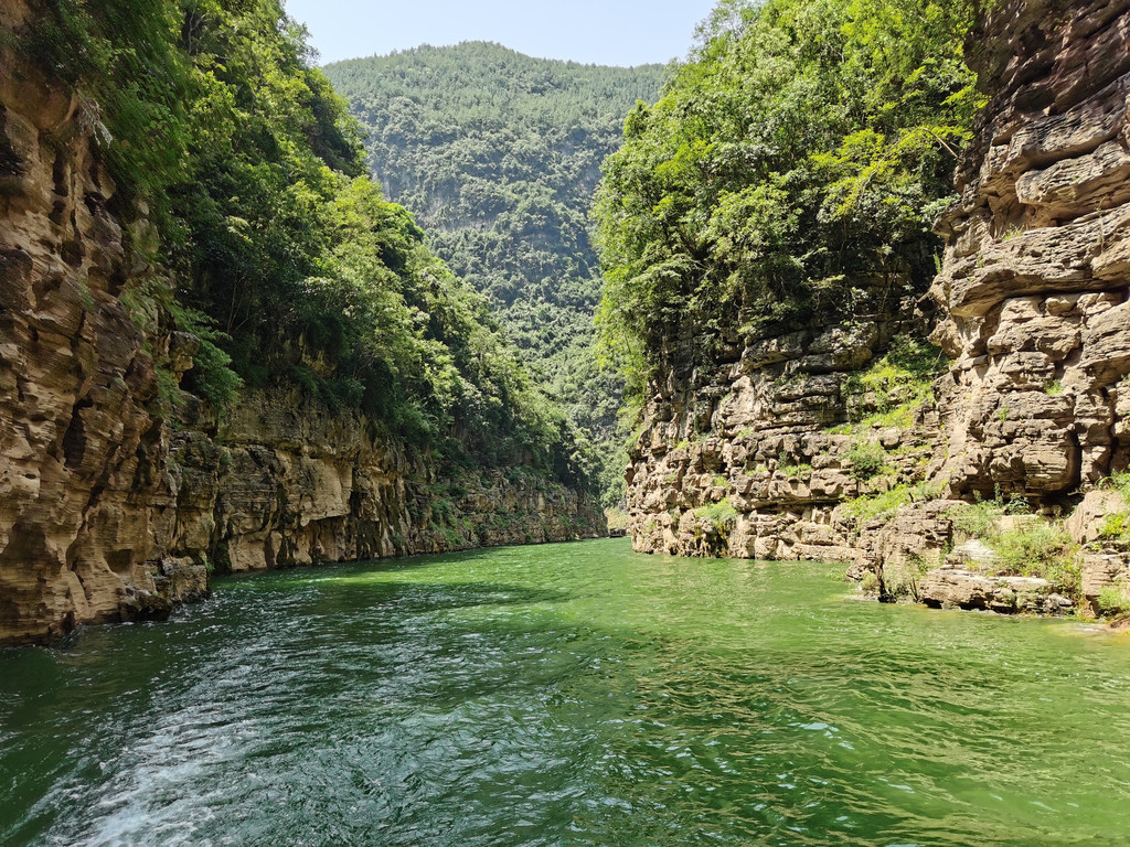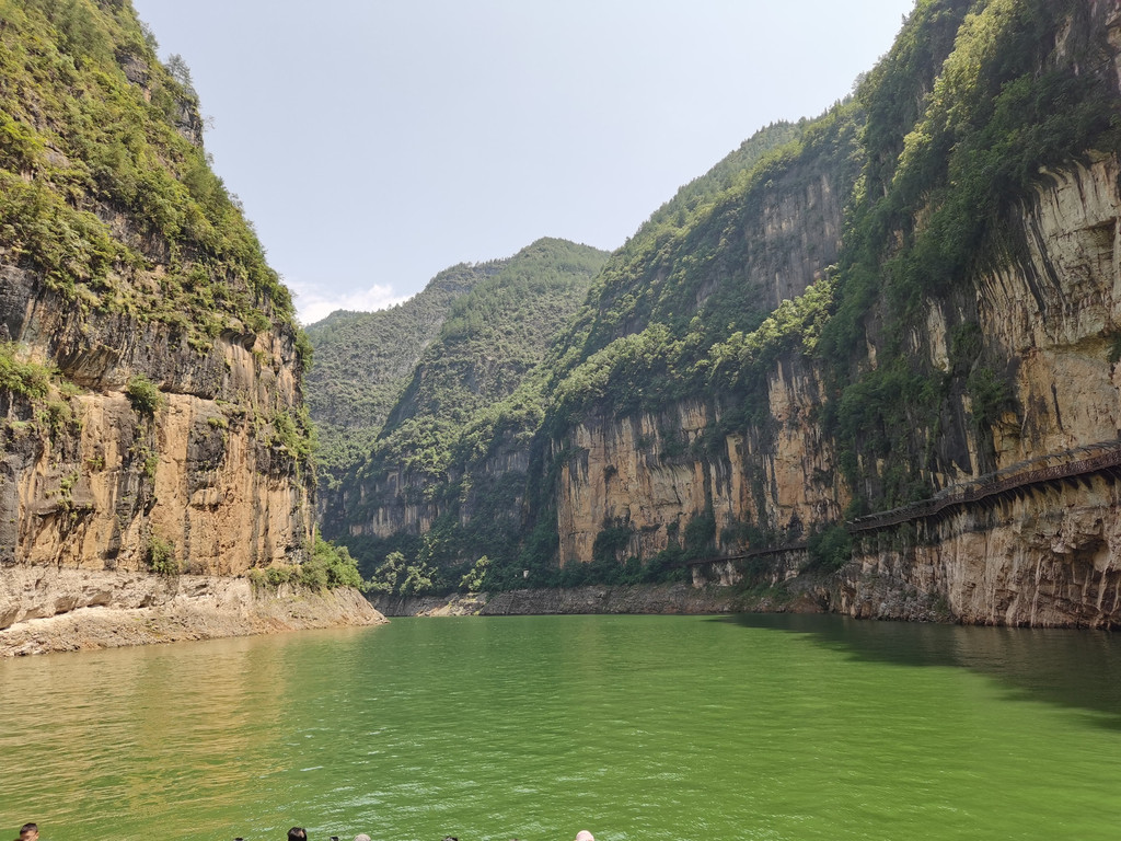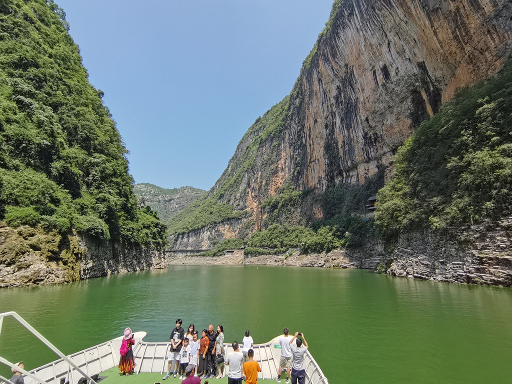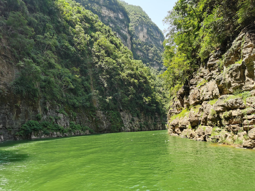 巫山小三峡门票120元,只得上午十点和下午两点发船,整个行程来回四个小时,现船不停靠大昌古城了,中午饭要自备零食解决。船一楼免费,上二楼加三十元,我们直接加五十元坐三楼vip室,人少安静视觉开阔,值得。小三峡河水碧绿,山高峡深,船行其中如在画中行。