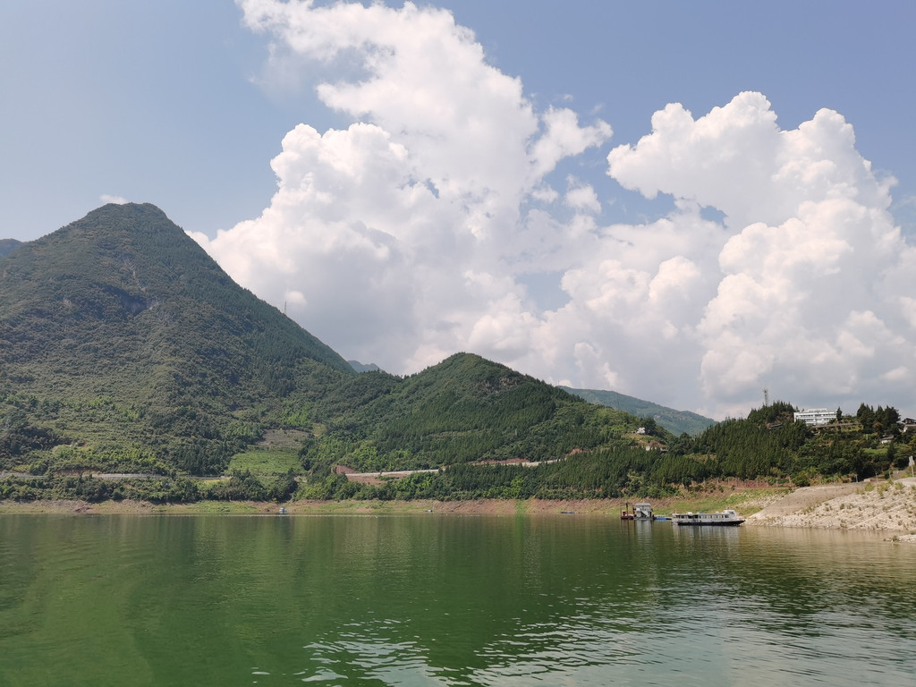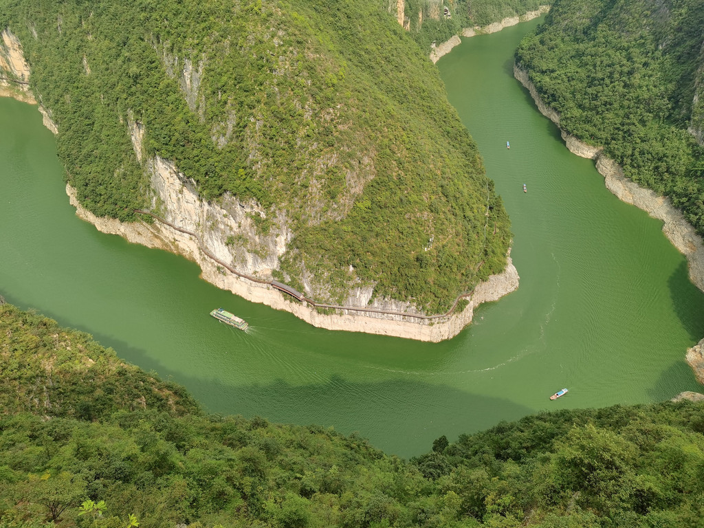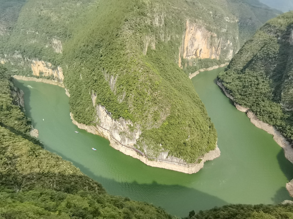 鱼头湾是个免费景点,离巫山市区四十分钟车程。可直接导航过去,看到个鱼头湾农家乐,再向前开两三百米,停车沿右边小路走,到山脚有很好的栈道,二十分钟到观景台,绝对有眼前一亮的感觉,船划过碧绿的水面,拖出长长的尾巴,绝了。