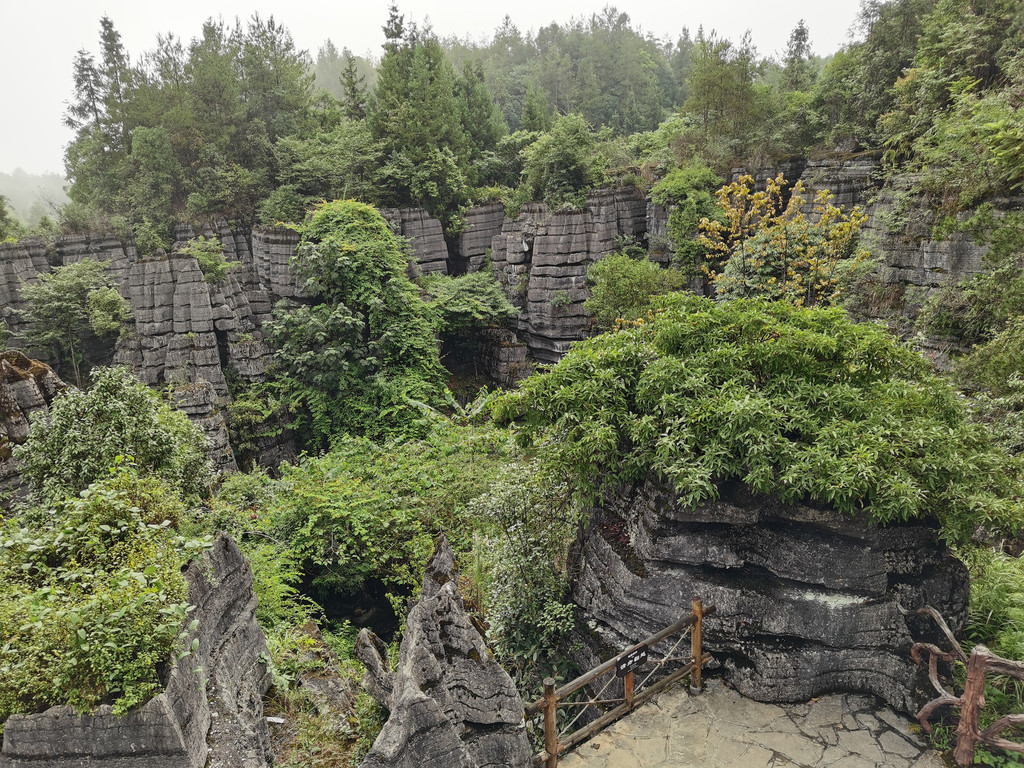 恩施大峡谷出来吃完午饭,二点半出发,经无数弯道,到重庆又返回恩施,五点终于到达梭布亚石林内农家乐,离莲花寨走路只需五分钟。