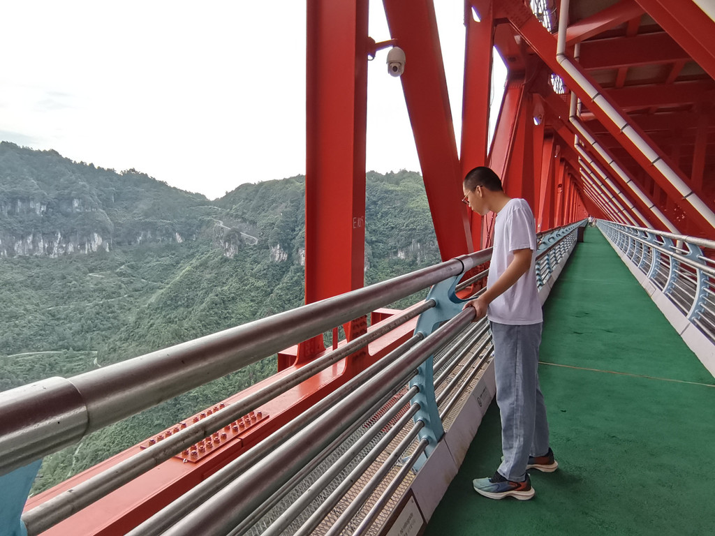德夯景区出来,开车半小时,经过九曲十八弯的矮寨公路到达矮寨大桥景区。有观光车坐到大桥入口。
